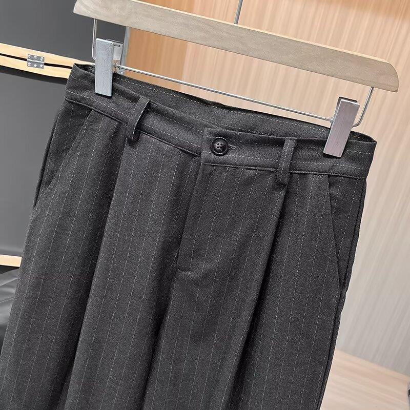 Herringbone, Pinstripes, Vertical Stripes, High-waisted, Wide-leg Design