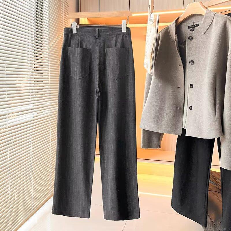 • Women's Fashion High Waist Wide Leg Wool Blend Striped Pants Commuter Office Casual Straight Long Trousers Wool Polyester Viscose Spandex Warm Trousers