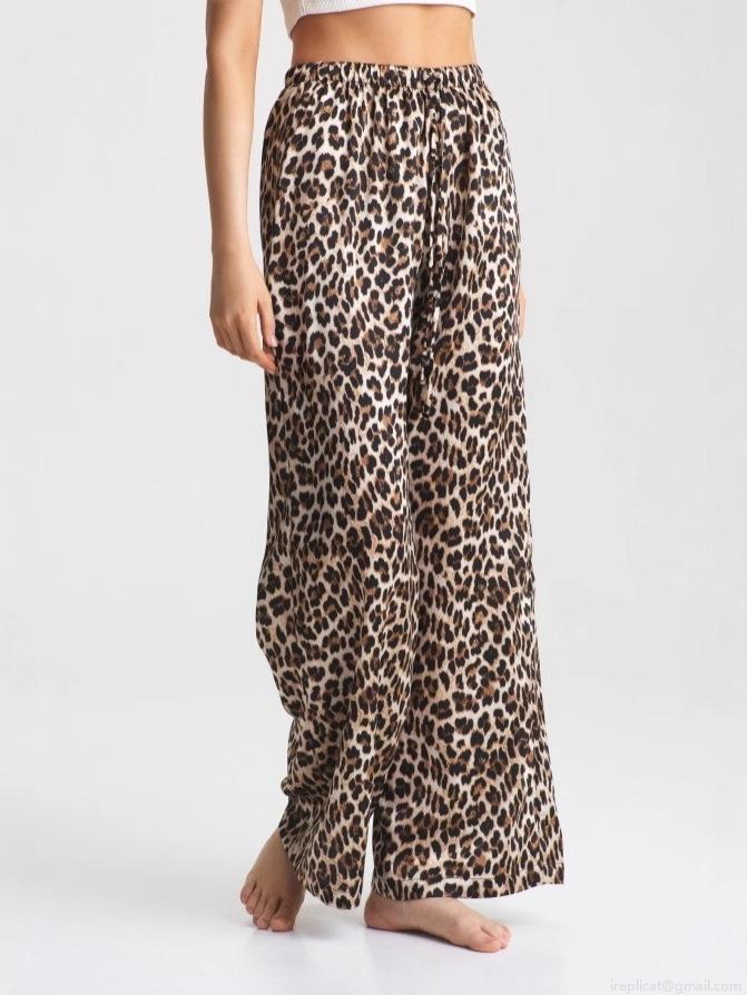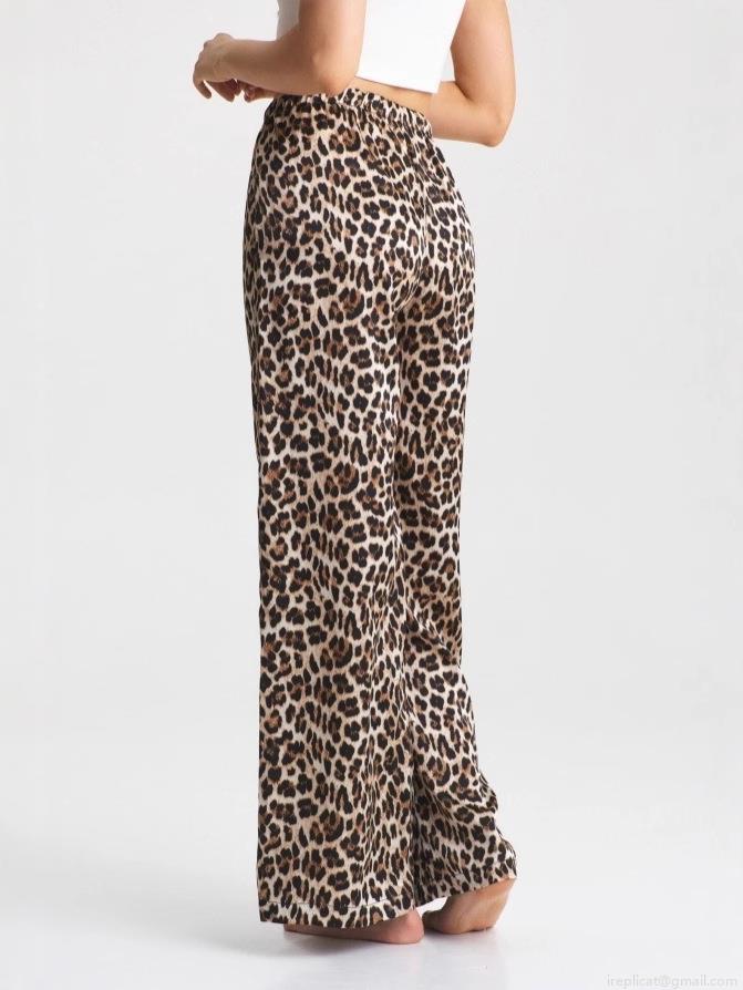 • Women's Fashion Leopard Print Wide Leg Pants Elastic High Waist Drawstring Loose Casual Trousers Streetwear Long Pants For Women