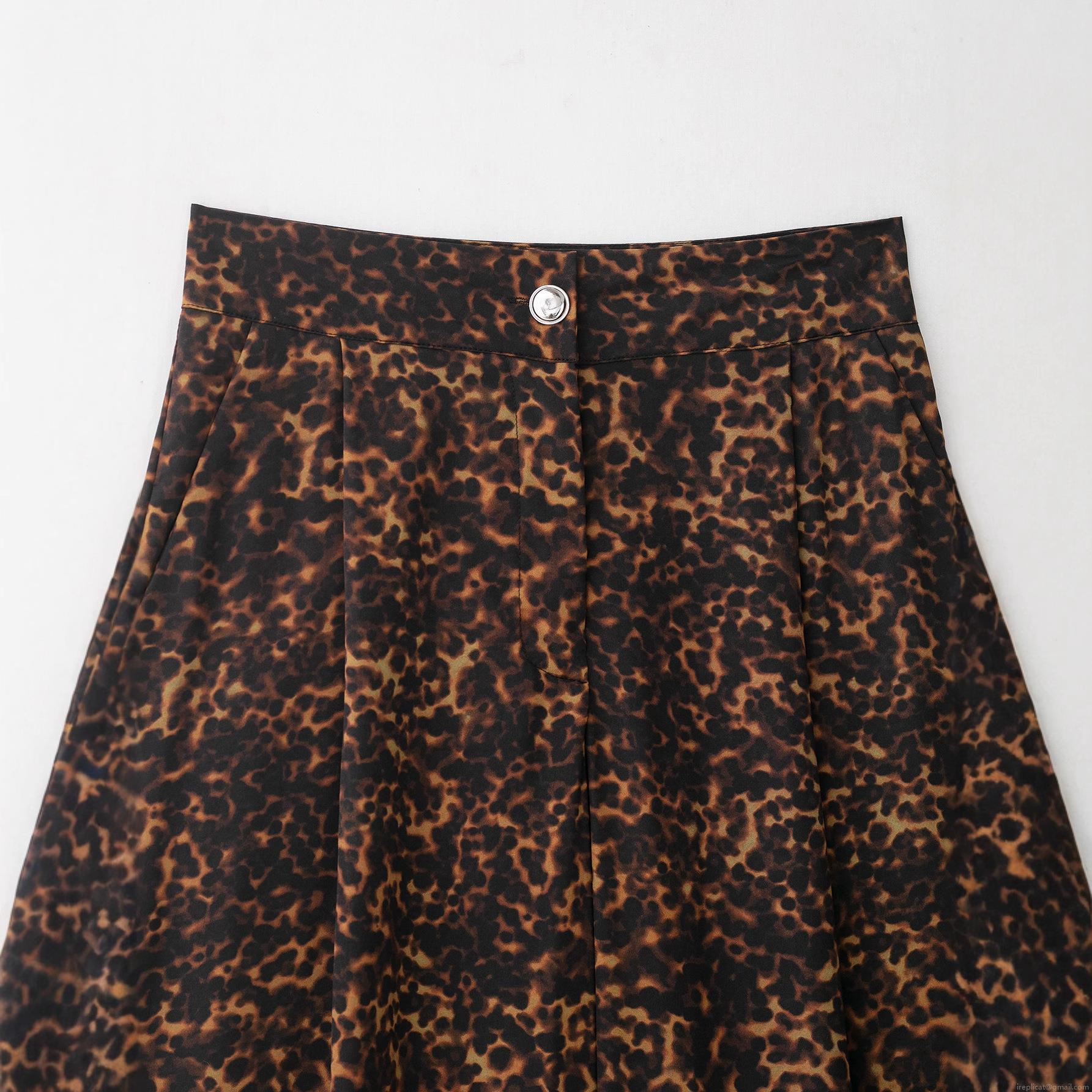 Women's Fashion Leopard Print Wide Leg Pants High Waist Casual Straight Animal Print Polyester Long Trousers Streetwear Versatile Bottoms
