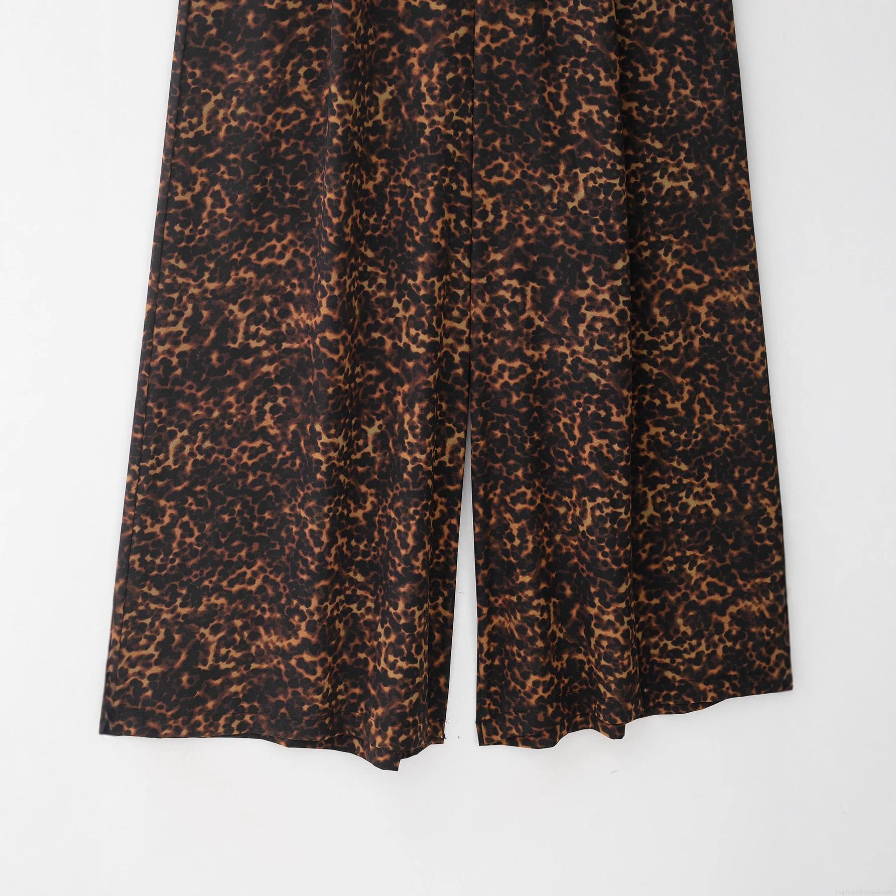 • Women's Fashion Leopard Print Wide Leg Pants High Waist Casual Straight Animal Print Polyester Long Trousers Streetwear Versatile Bottoms