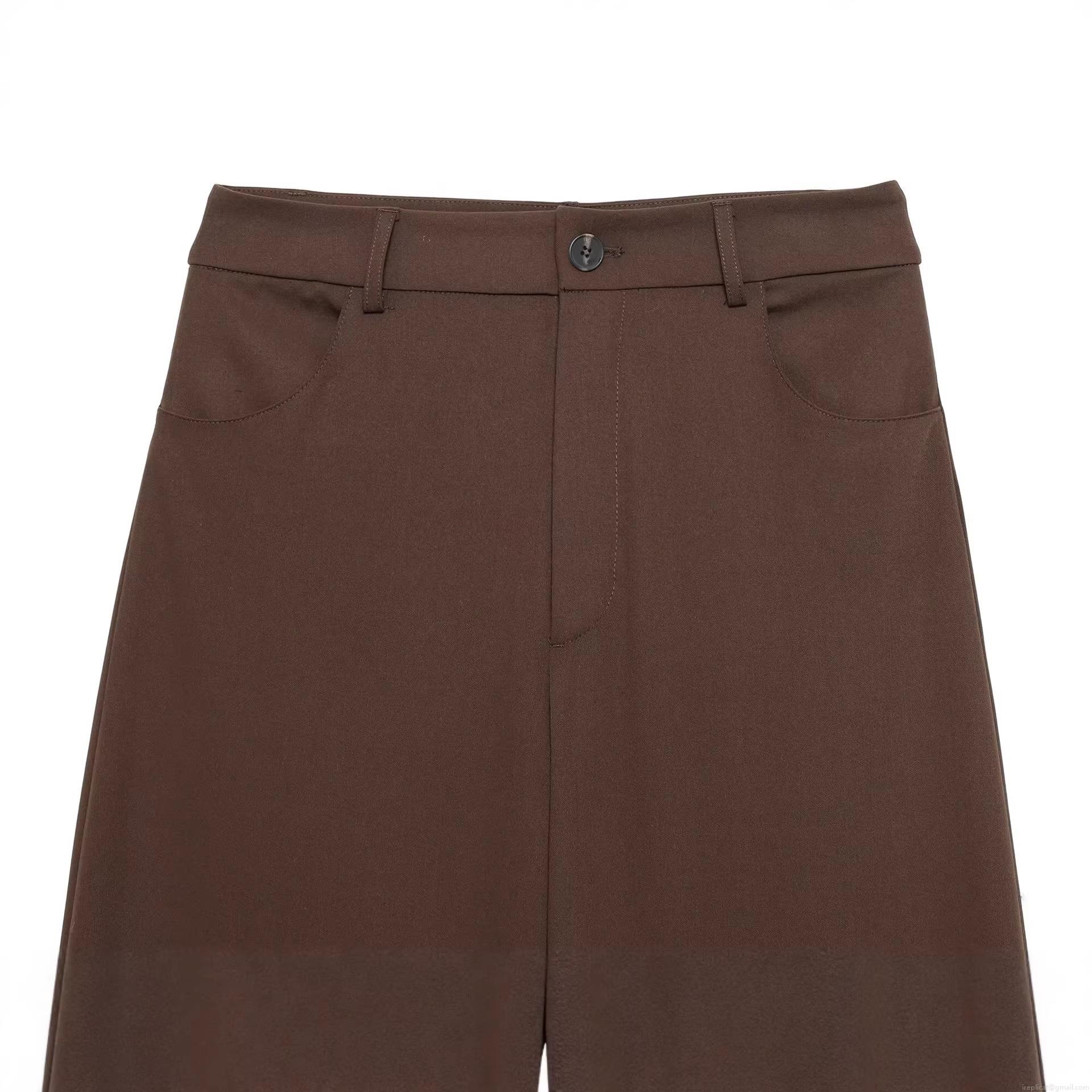 • Women's Fashion Loose Wide Leg Casual Pants Solid Deep Brown Straight Trousers For Spring Summer High Waist Polyester Trousers With Button Zipper Fly Daily Streetwear