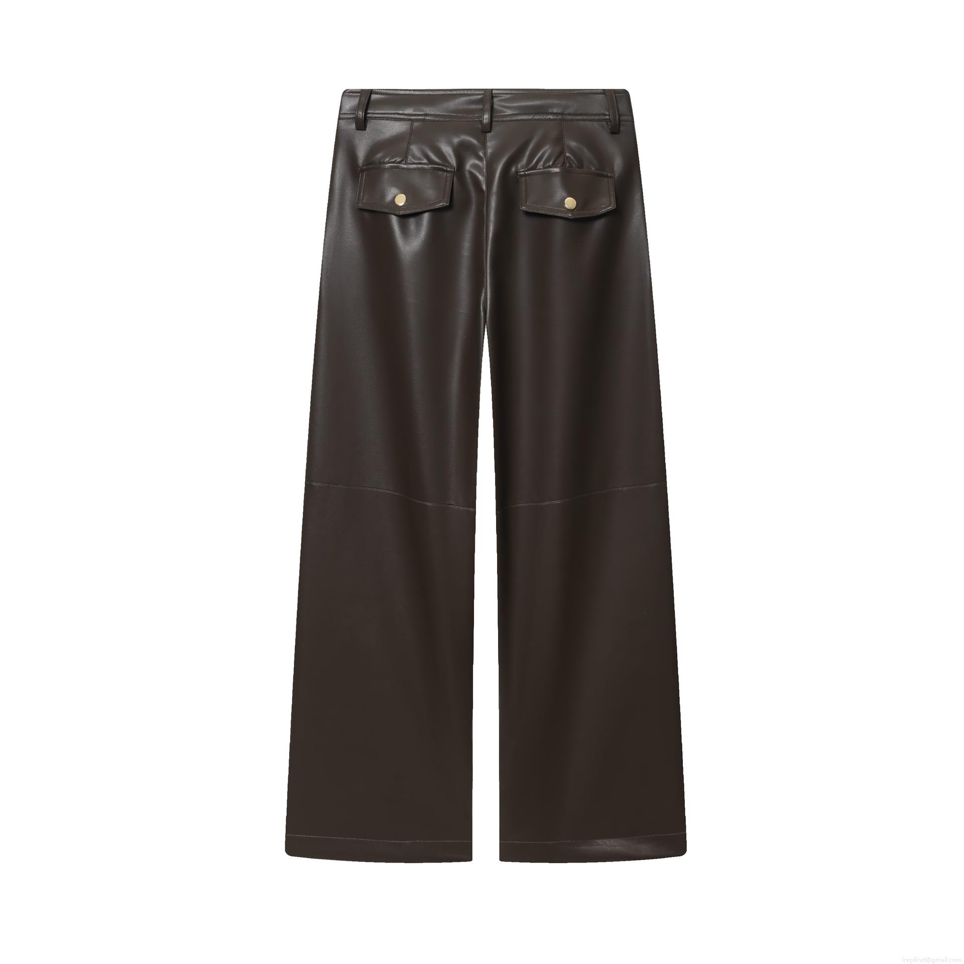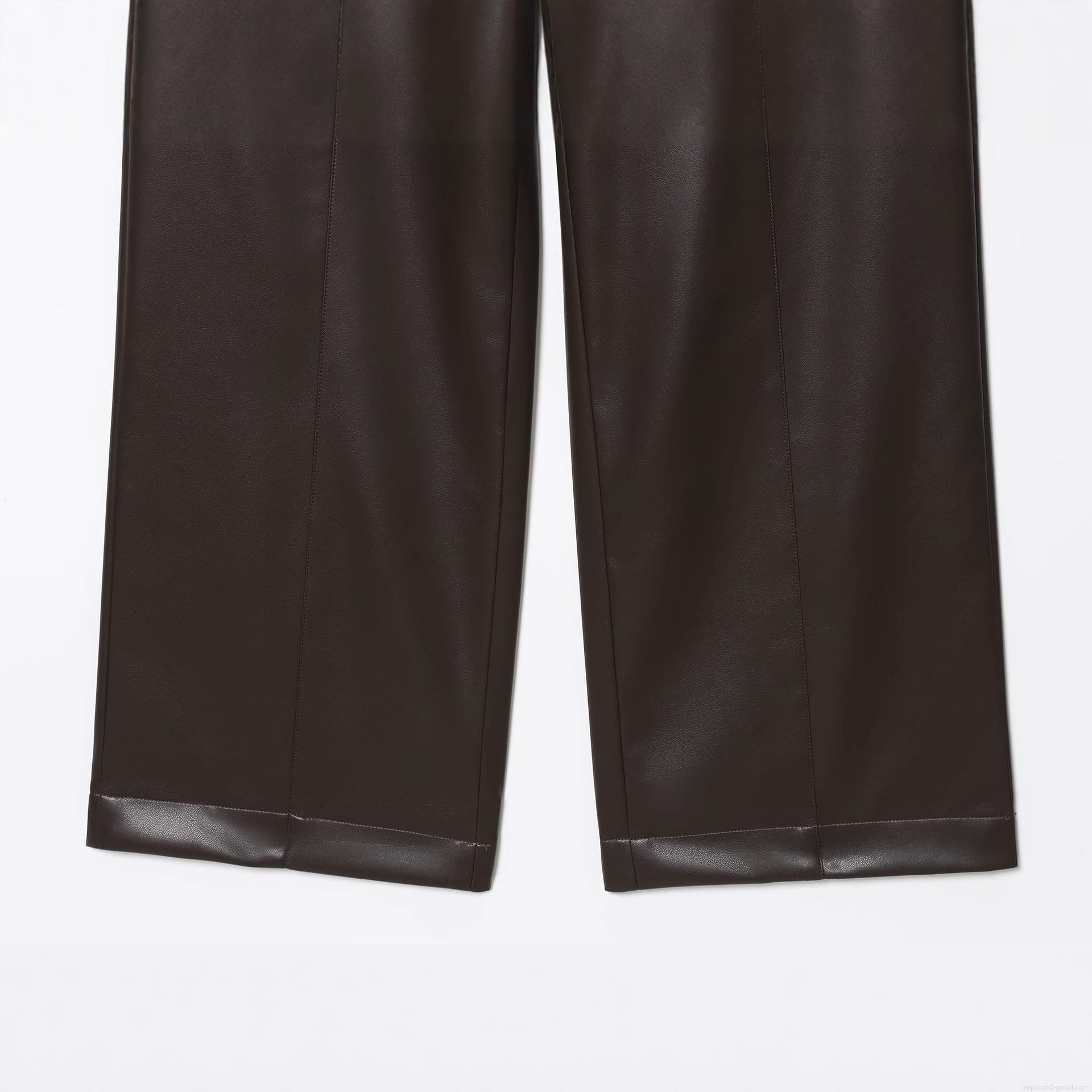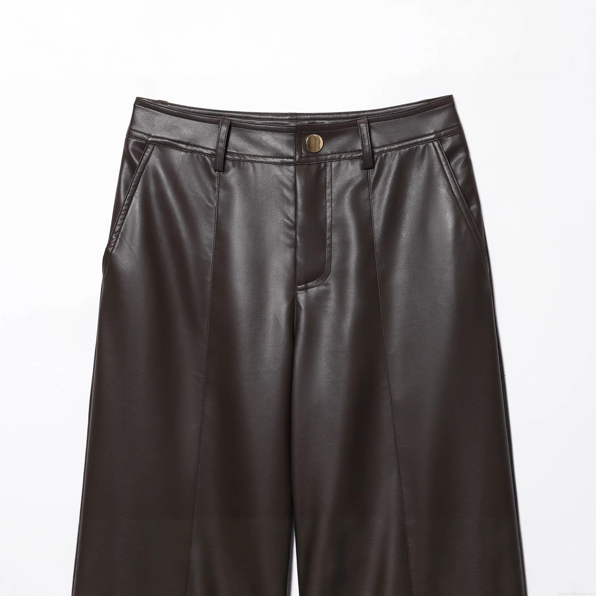 • Women's Faux Leather High Waisted Straight Leg Pants Chic Dark Brown PU Trousers Casual Wide Leg Streetwear Bottoms