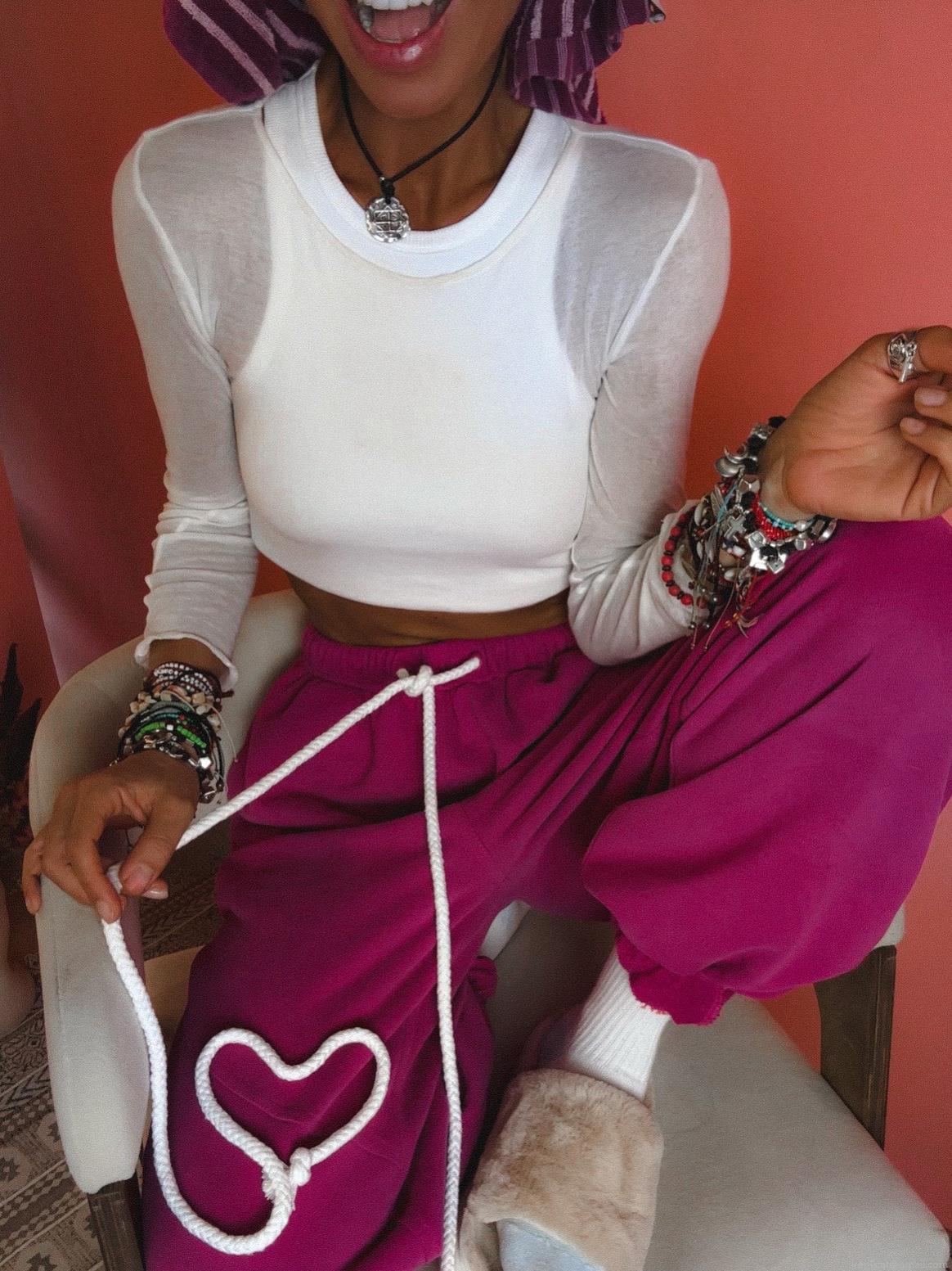 • Women's Fuchsia High Waist Sweatpants Cotton Blend Drawstring Joggers Streetwear Letter Printed Cuffed Casual Pants For Women Daily Wear