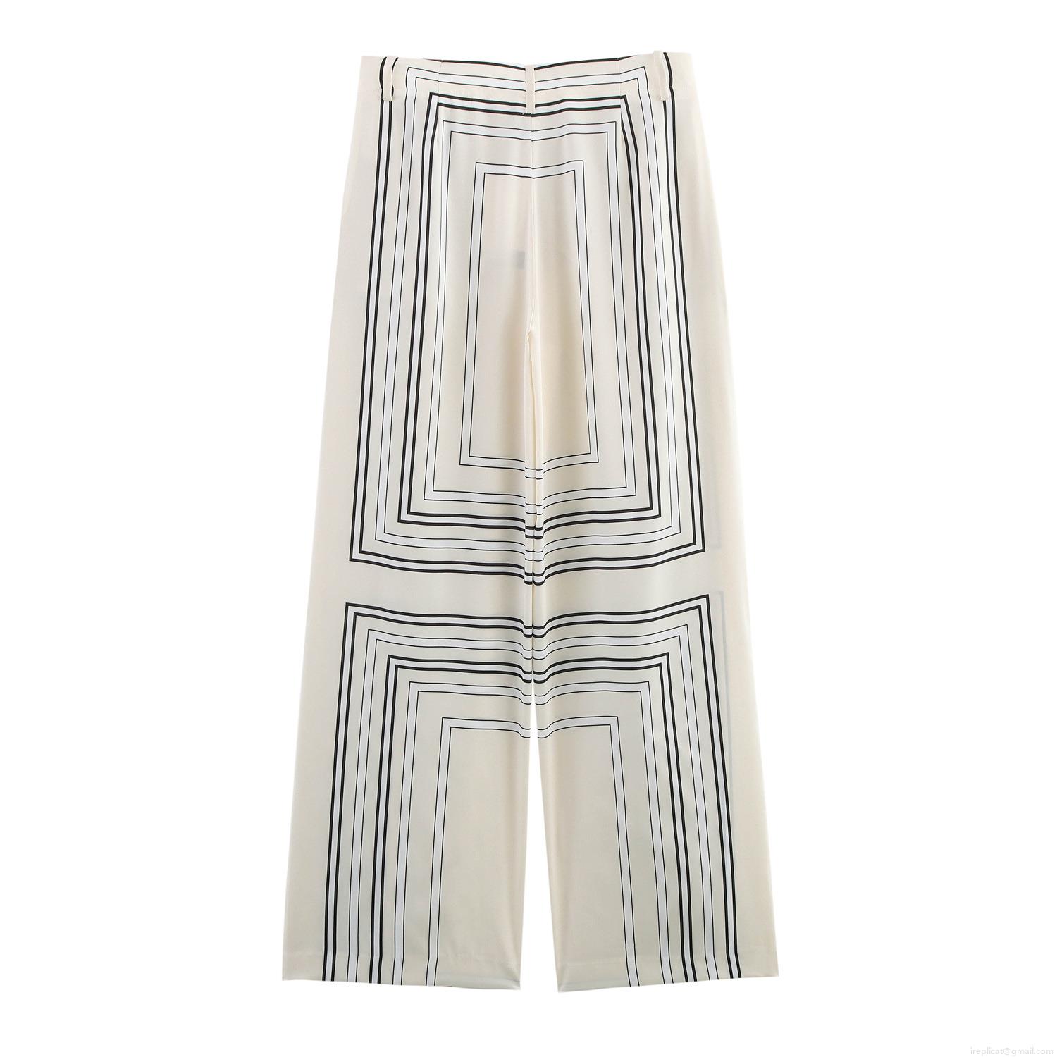 • Women's Geometric Print Wide Leg Pants High Waist Satin Silk Straight Trousers Casual Loose Long Trousers for Streetwear Summer Fashion