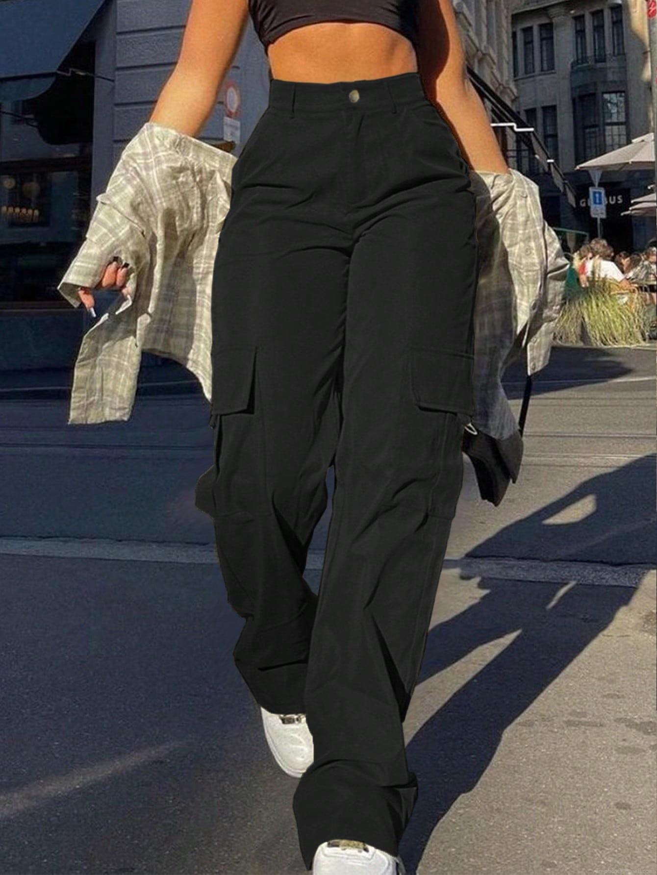 • Women's High Waist Cargo Pants Multi-Pockets 100% Polyester Loose Wide Leg Streetwear Trousers Casual Fashion Long Pants for Women Daily Wear