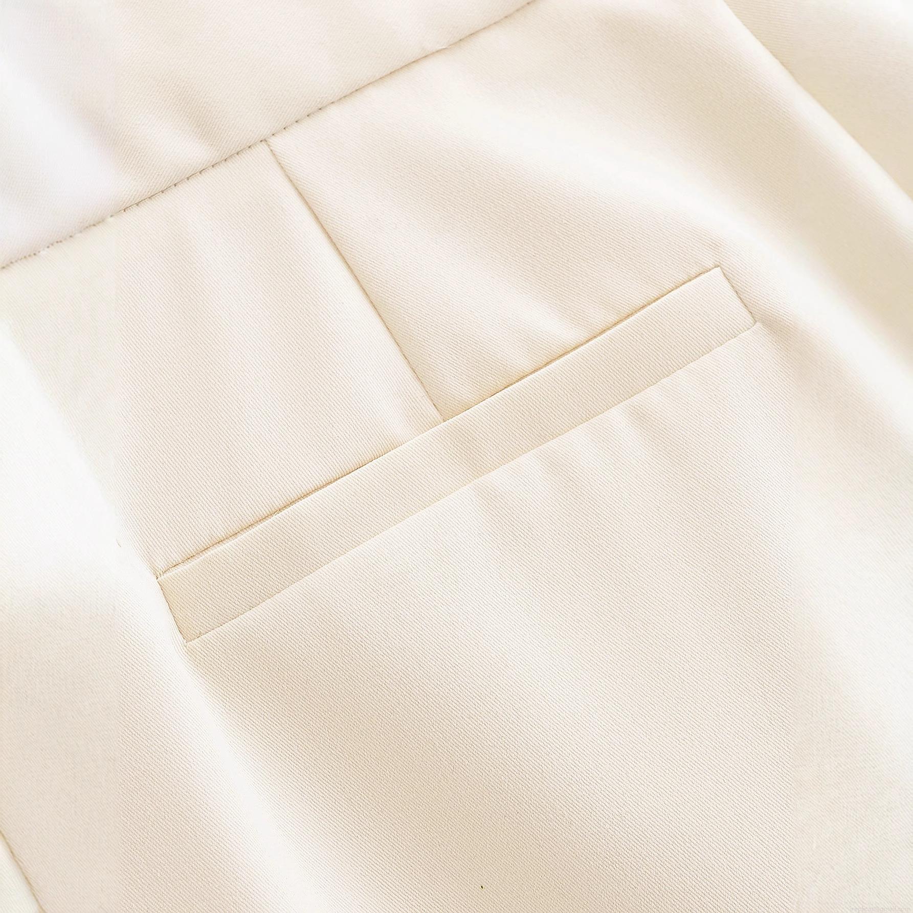 Women's High Waist Casual Trousers 100% Polyester Woven Fabric Straight Leg Pants With Double Button Pleated Detail For Daily Office Wear Elegant Cream White Long Pants