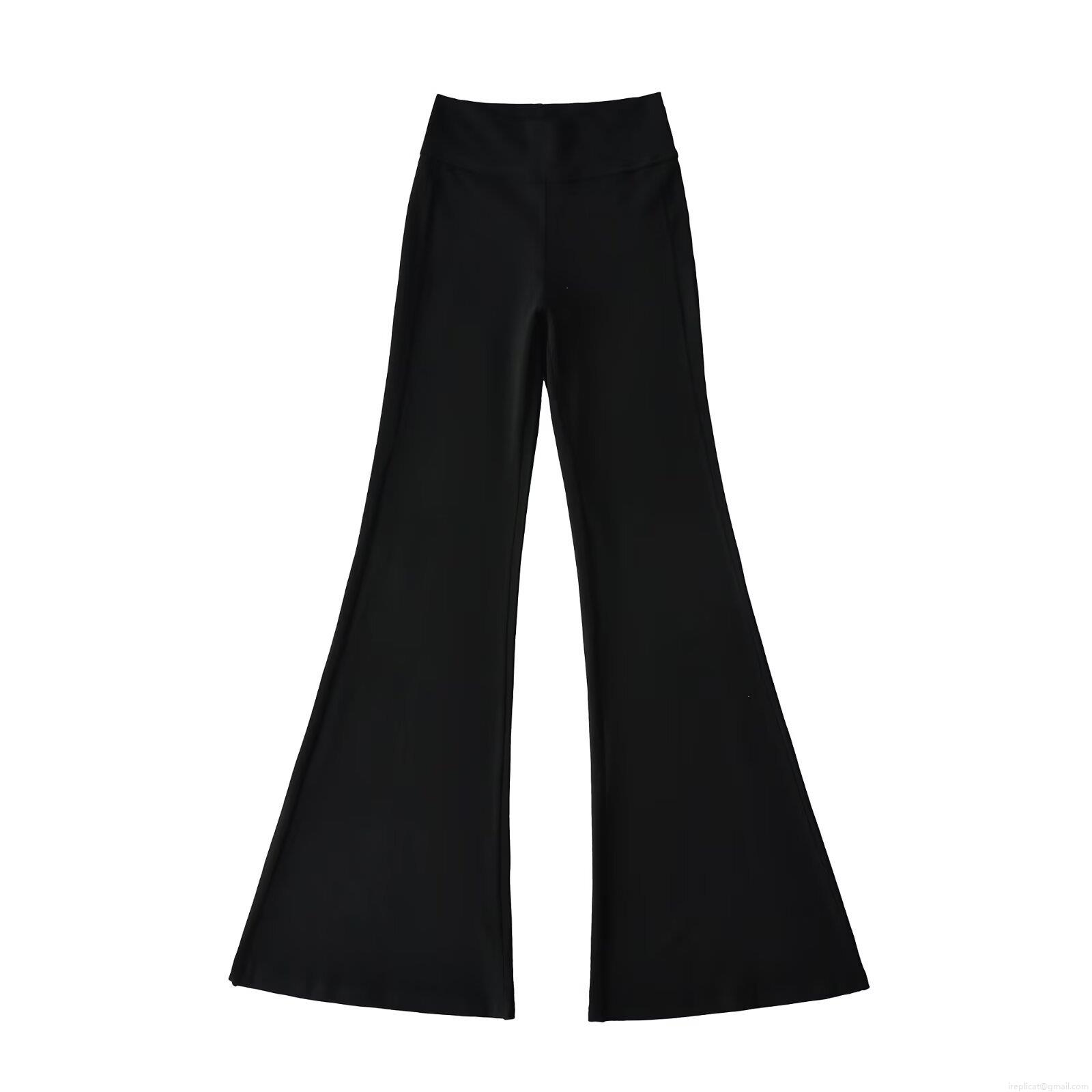 Solid Color, High-waisted Design, Flared Trouser Legs