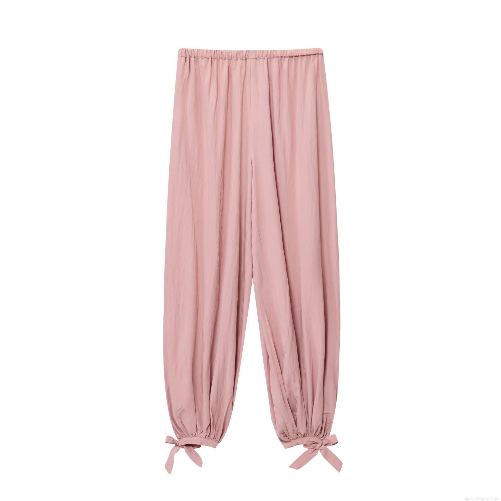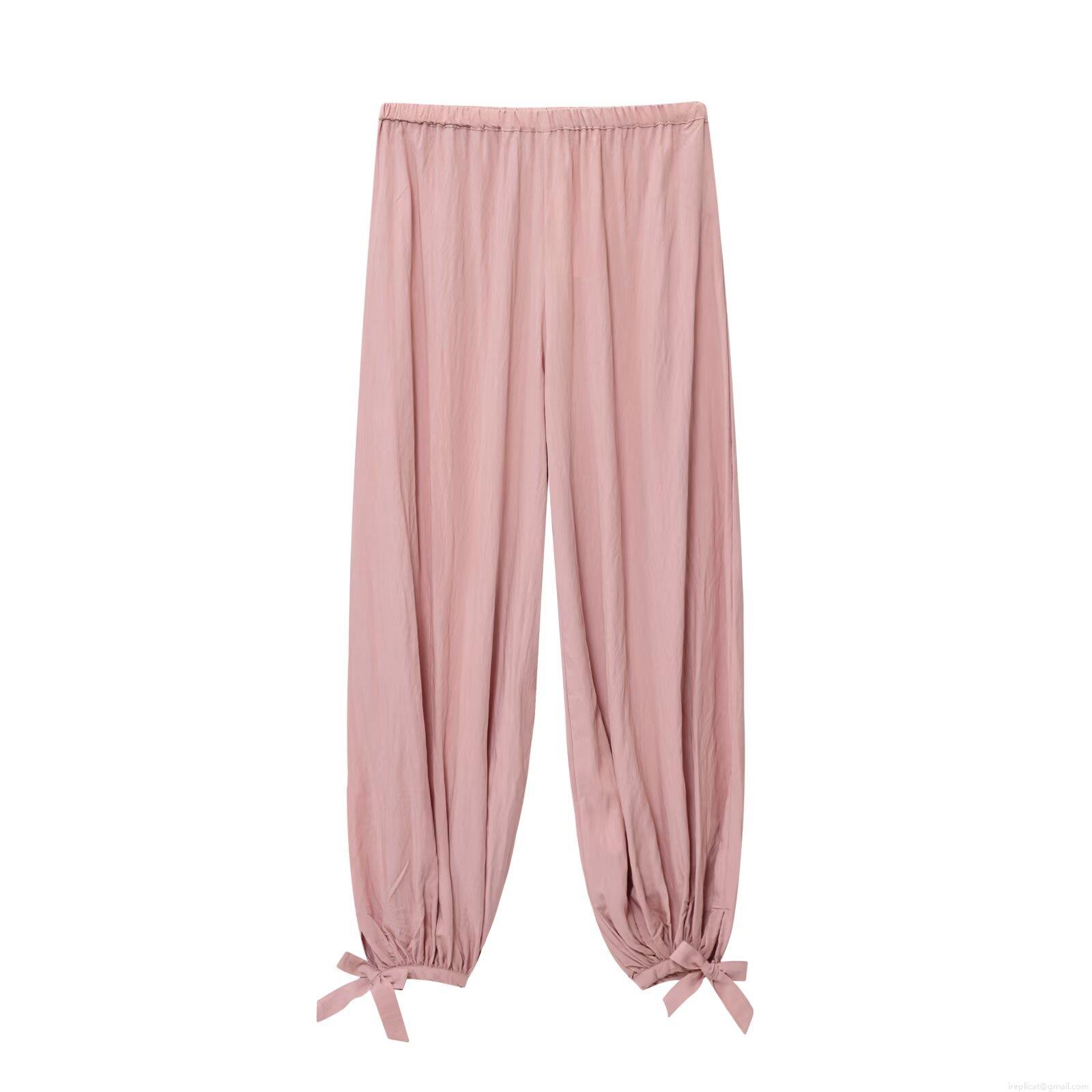 Solid Color, Pleats, Elastic Waistband, Bow Tie, Foot Binding Design