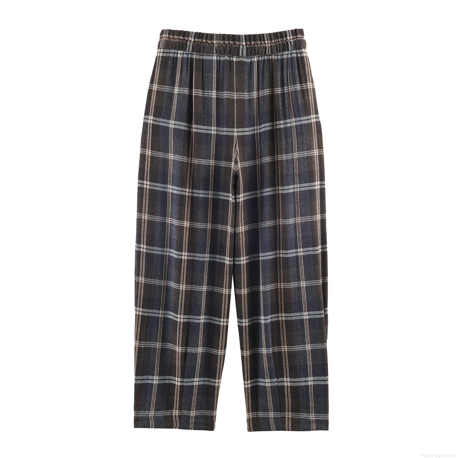 • Women's High Waist Plaid Casual Pants Elastic Drawstring Tapered Trousers Polyester Cotton Blend Retro Pants for Daily Work Streetwear