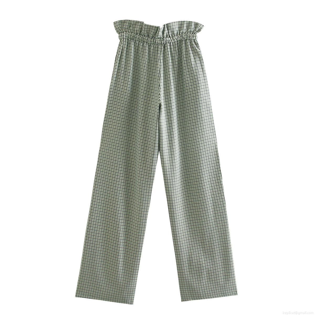 • Women's High Waist Plaid Wide Leg Pants Elastic Paperbag Waist Houndstooth Trousers Polyester Spandex Relaxed Fit Casual Office Wear