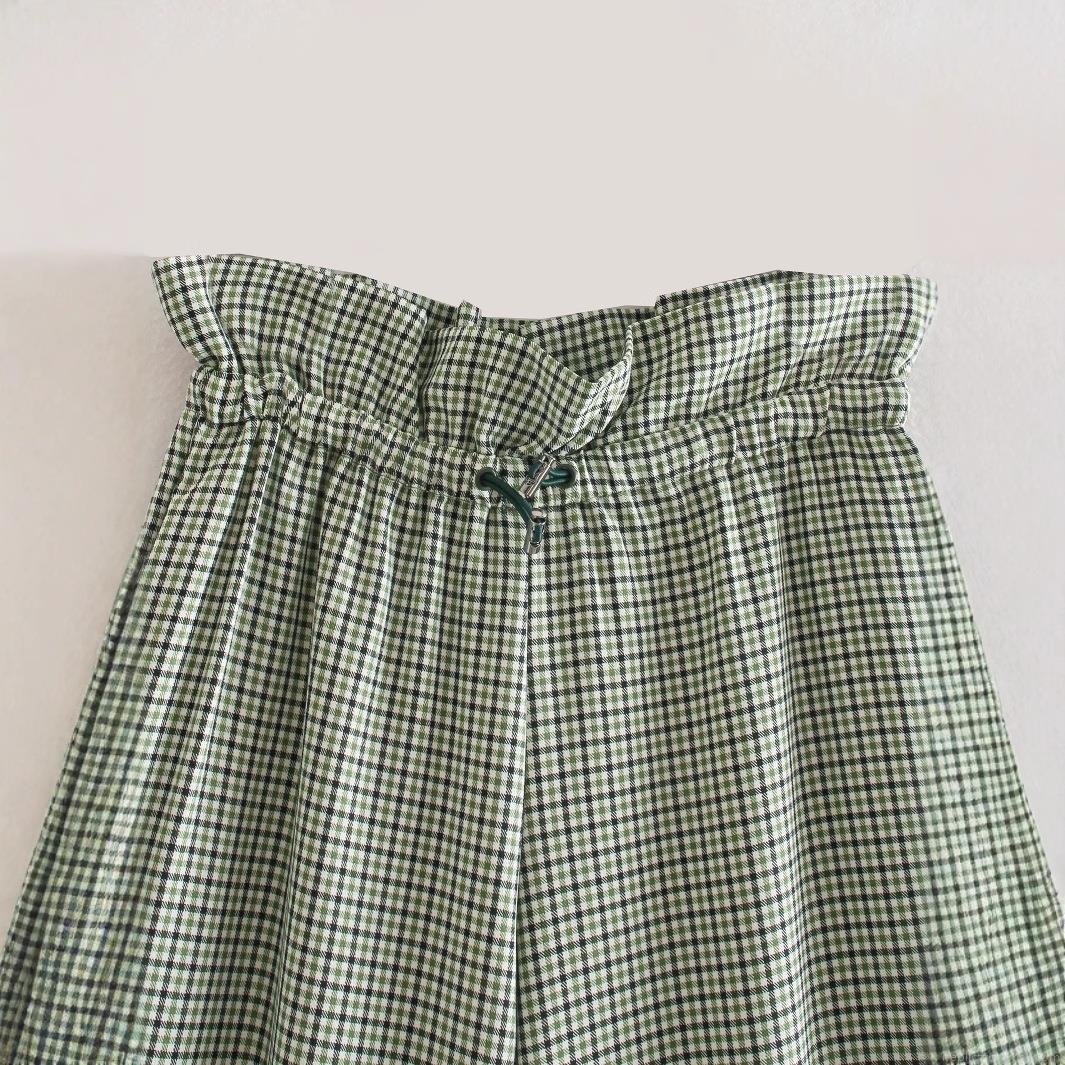 Houndstooth, Checkered Pattern, Ruffles, Drawstring, Elastic Waistband