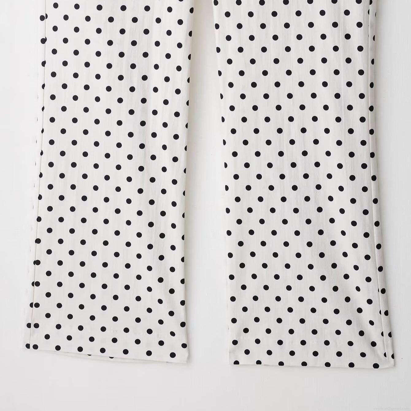 • Women's High Waist Polka Dot Flare Pants Elegant Slim Fit Straight Leg Trousers 100% Polyester Woven Long Pants For Summer Daily Commute