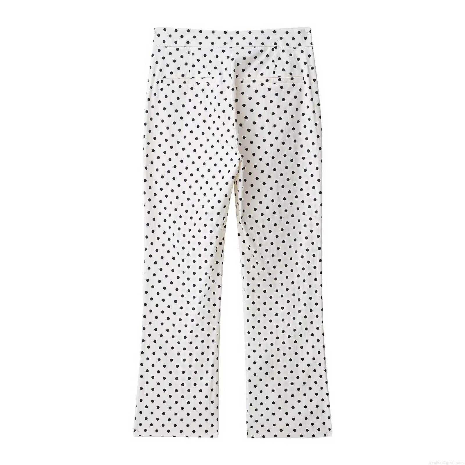 Women's High Waist Polka Dot Flare Pants Elegant Slim Fit Straight Leg Trousers 100% Polyester Woven Long Pants For Summer Daily Commute