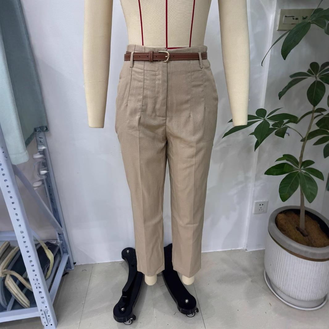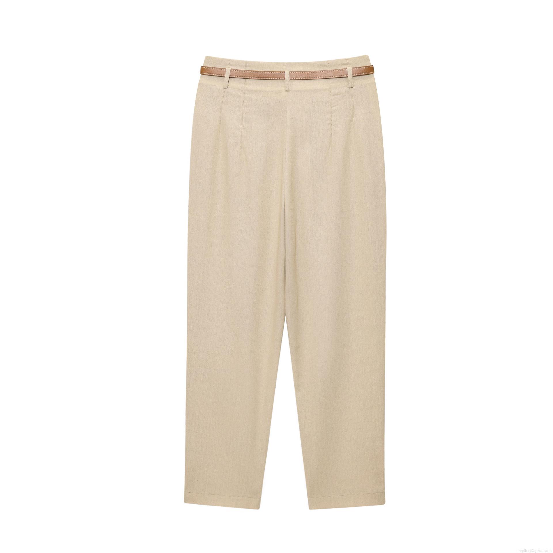 • Women's High Waist Straight Leg Casual Pants With Brown Belt Khaki Summer Vacation Cotton Linen Blend Trousers For Women Elegant Office Trousers