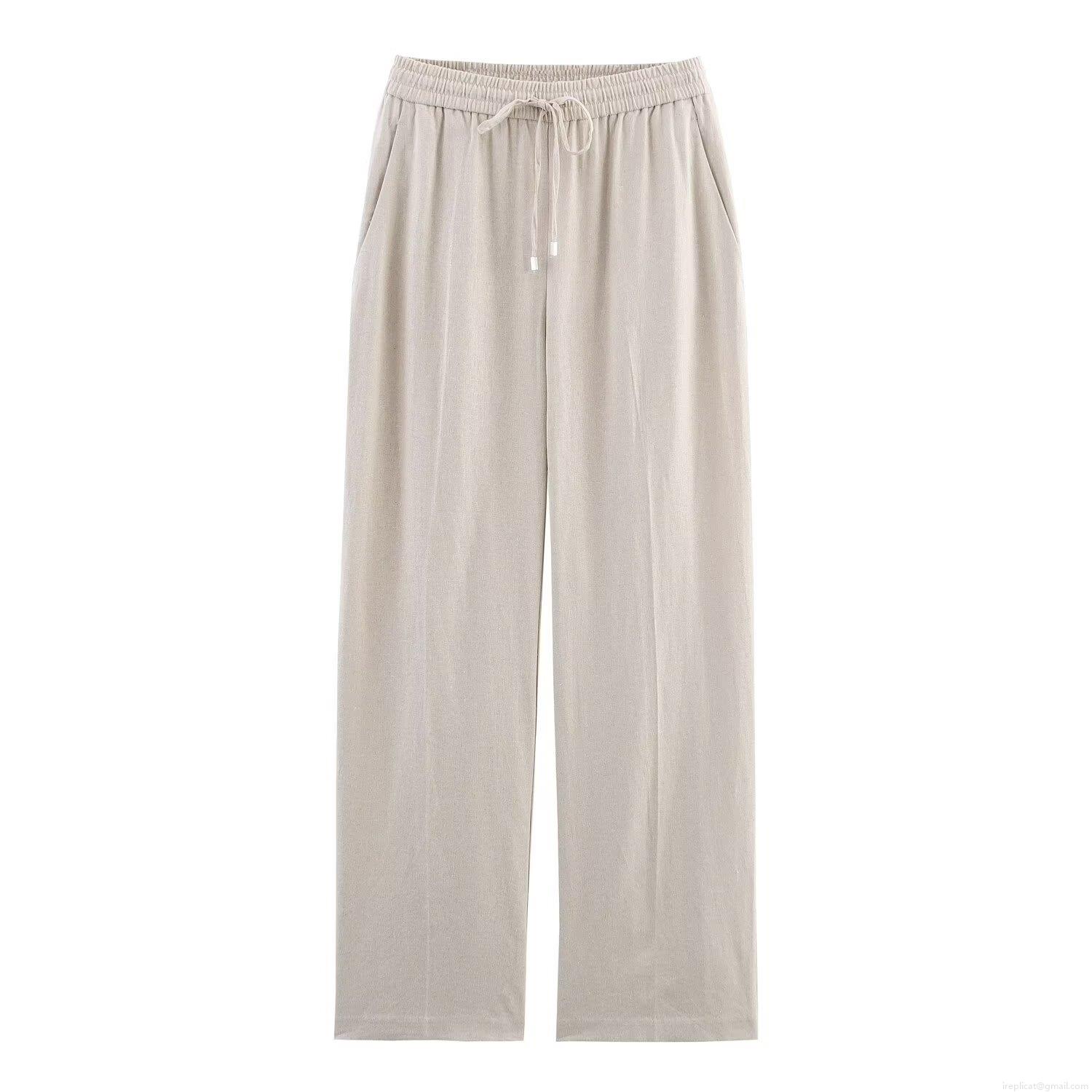 • Women's High Waist Straight Leg Pants Linen Blend Casual Loose Drawstring Trousers Retro INS Style Solid Color Fashion Bottoms for Ladies