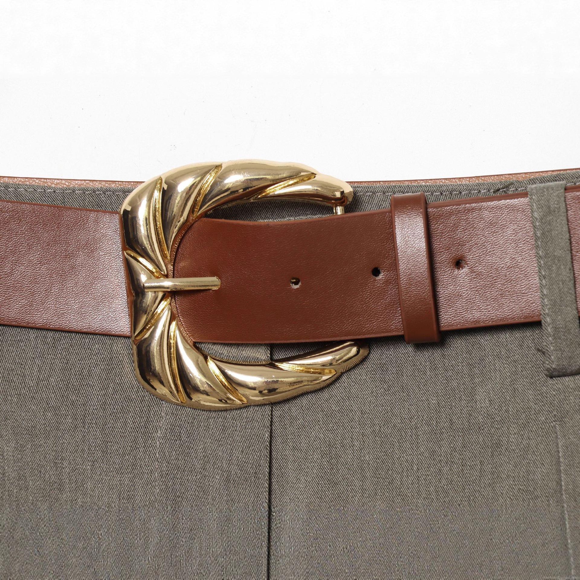 • Women's High Waist Straight Leg Pants With Brown Leather Belt Polyester Blend Core-spun Yarn Twill Long Trousers Office Casual Versatile Elegant Bottoms For Ladies