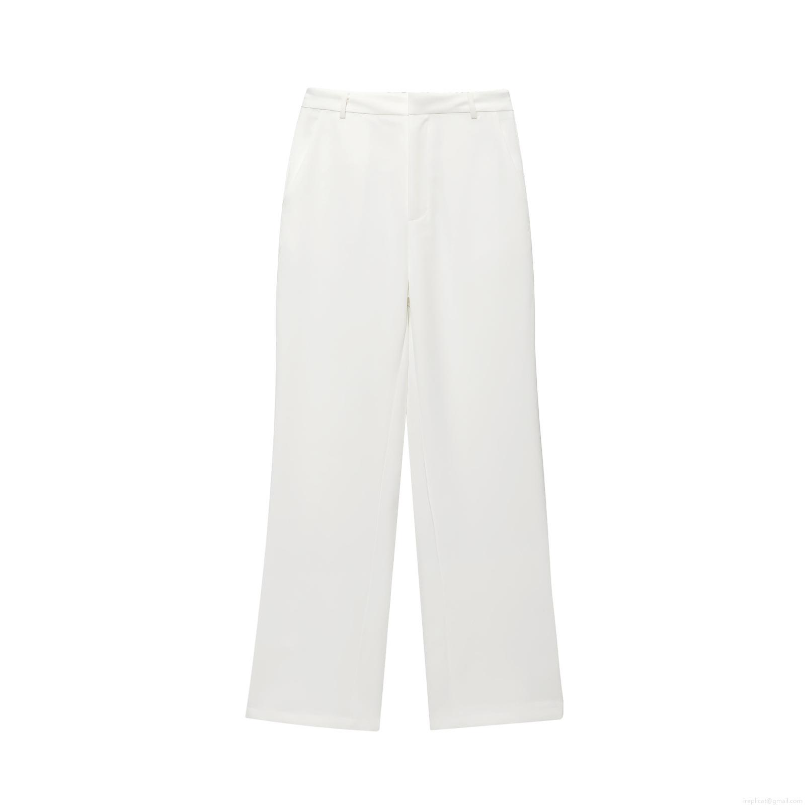 • Women's High Waist Straight Leg Trousers Casual Polyester Solid Color Wide Leg Pants for Office Daily Streetwear Fashion