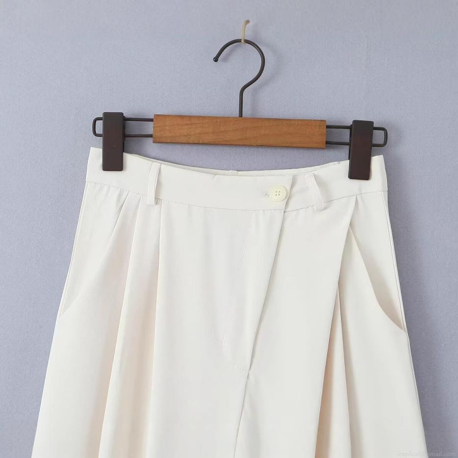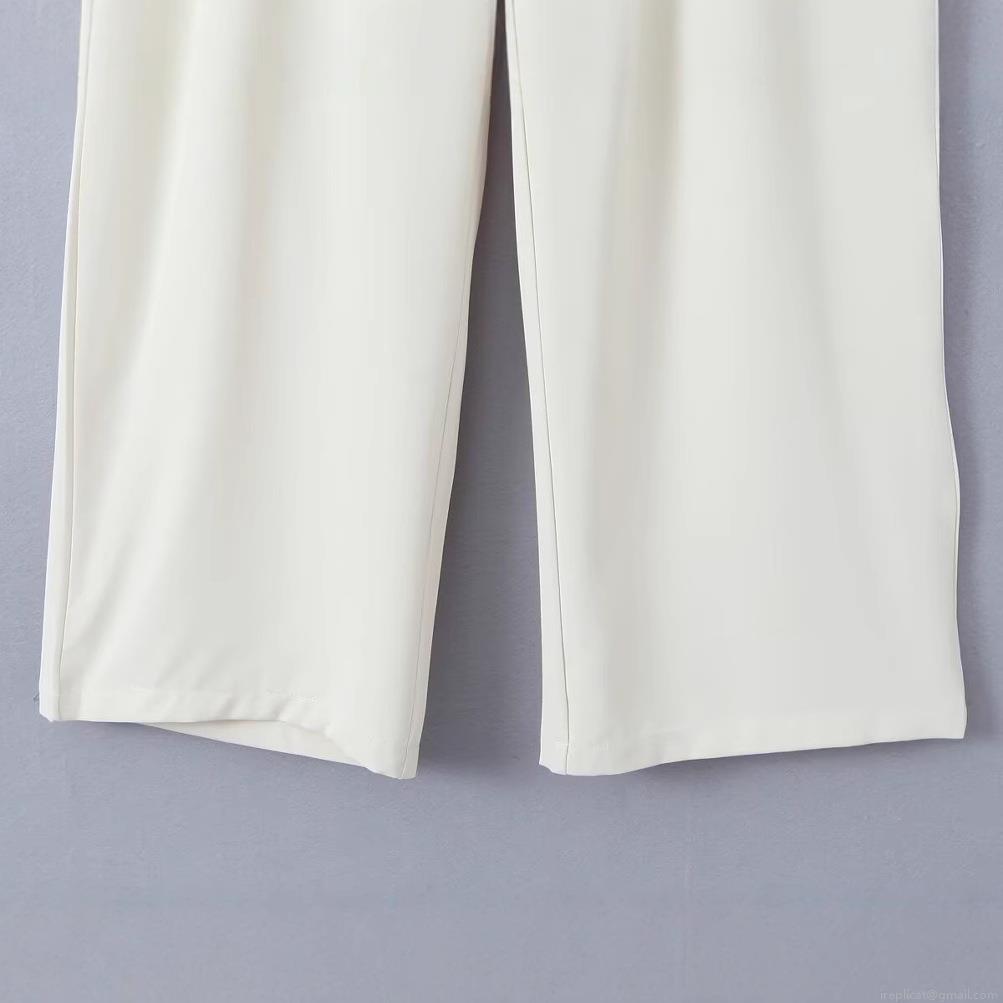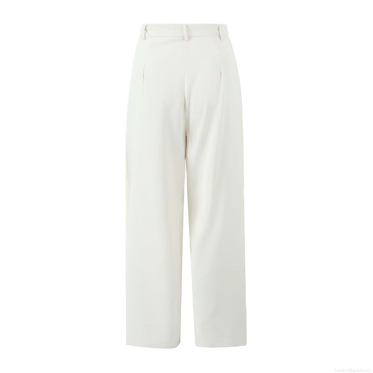 • Women's High Waist Straight Leg Trousers Elegant Off-White Solid Color Casual Suit Pants Pleated Wide Leg Trousers For Office Daily Streetwear