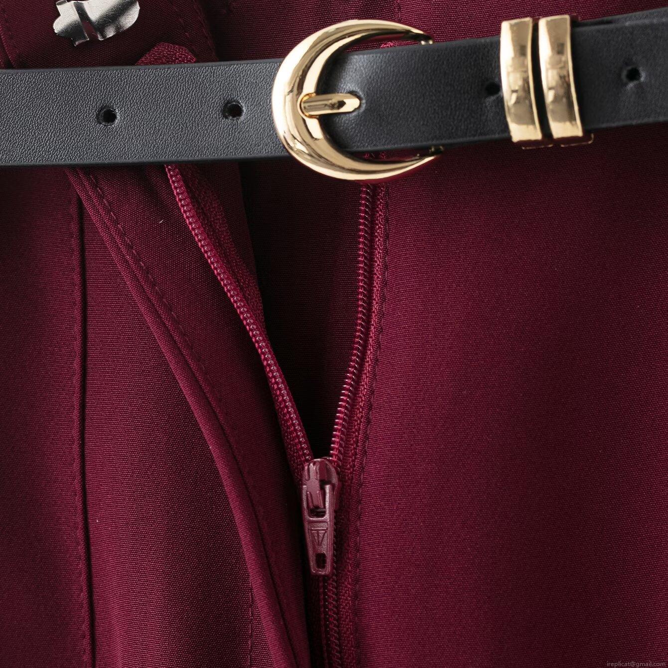 Solid Color, Pleats, Belt Decoration, Center Seam Quilting