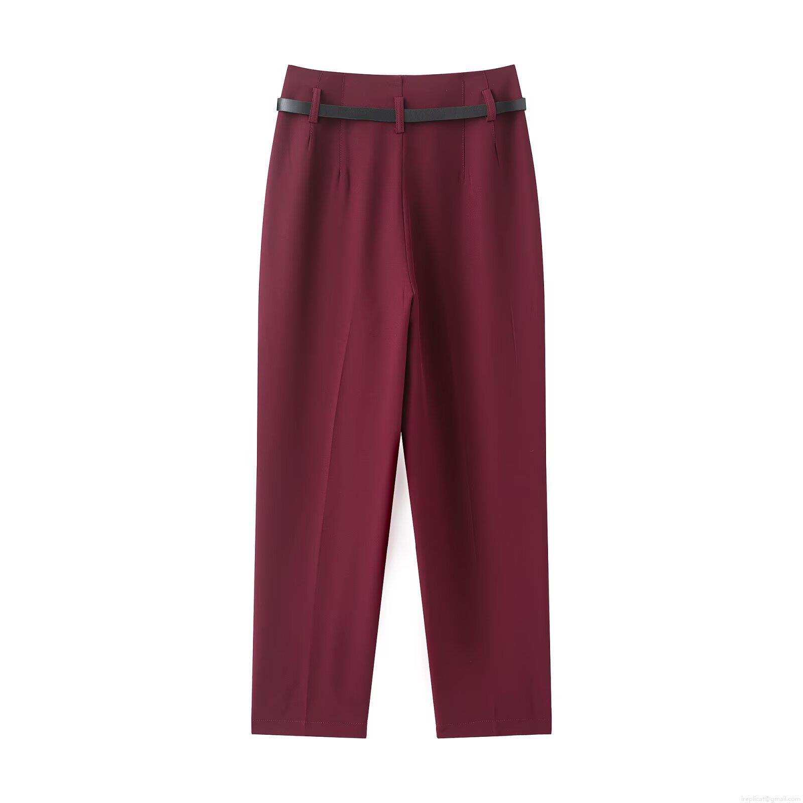 • Women's High Waist Straight Leg Trousers With Belt Casual Solid Color Office Commuter Suit Pants Elegant Loose Long Pants For Women