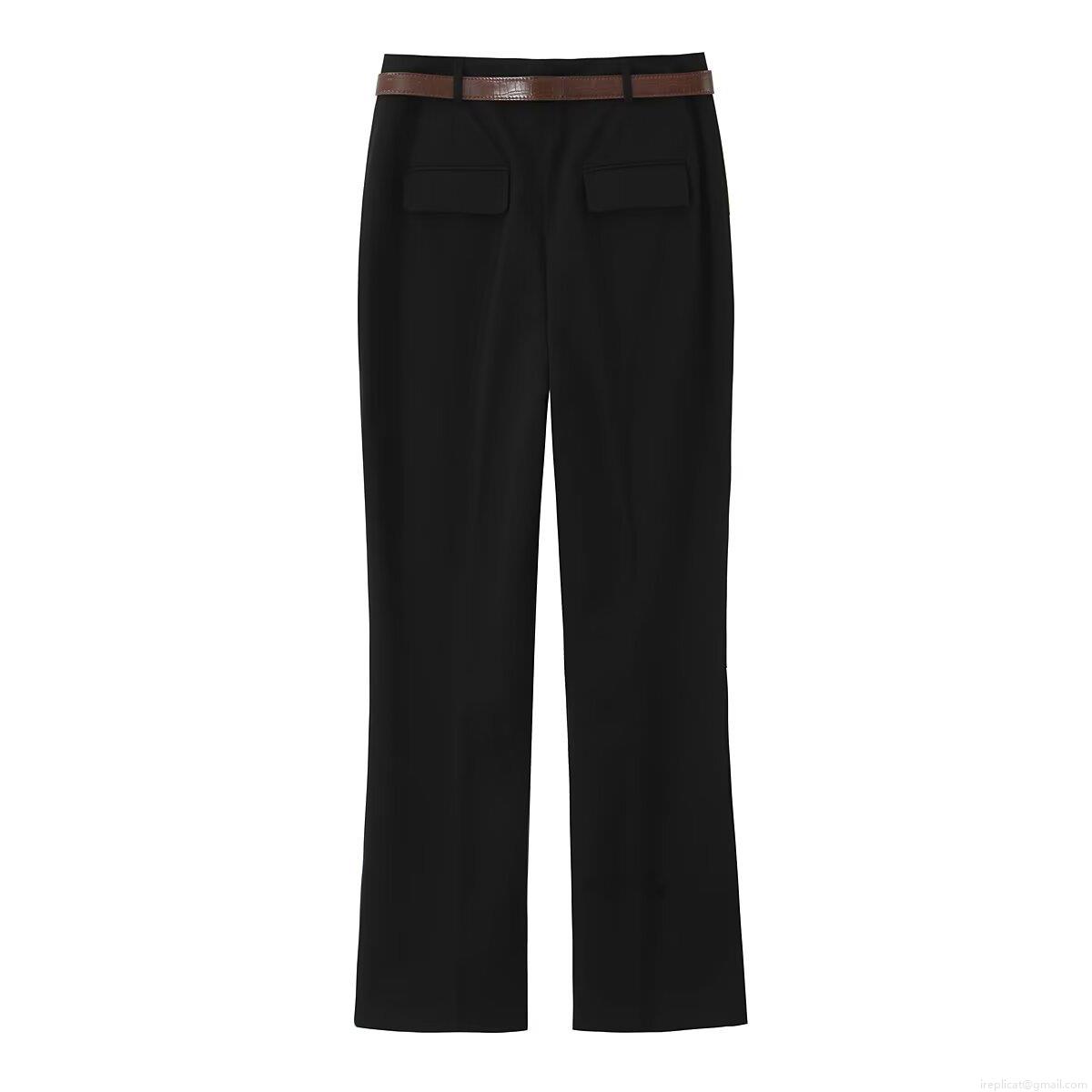 • Women's High Waist Straight Leg Trousers With Decorative Crocodile Texture Belt Solid Color Office Commuting Casual Full Length Pants