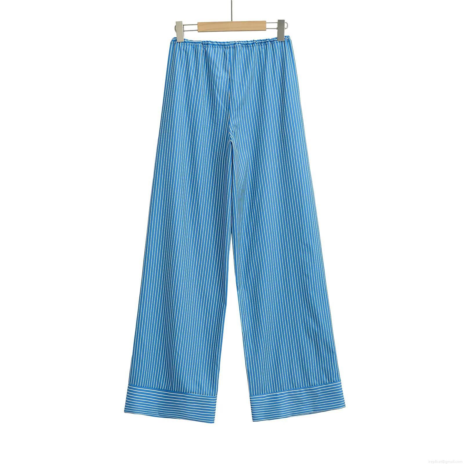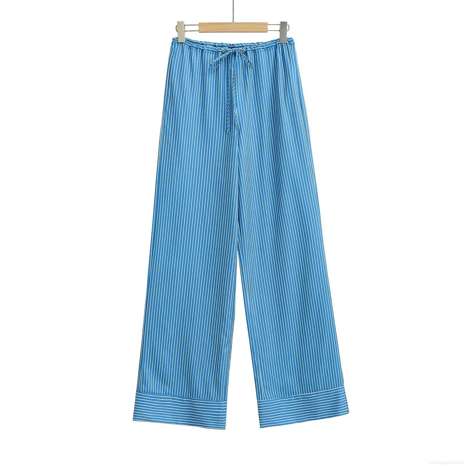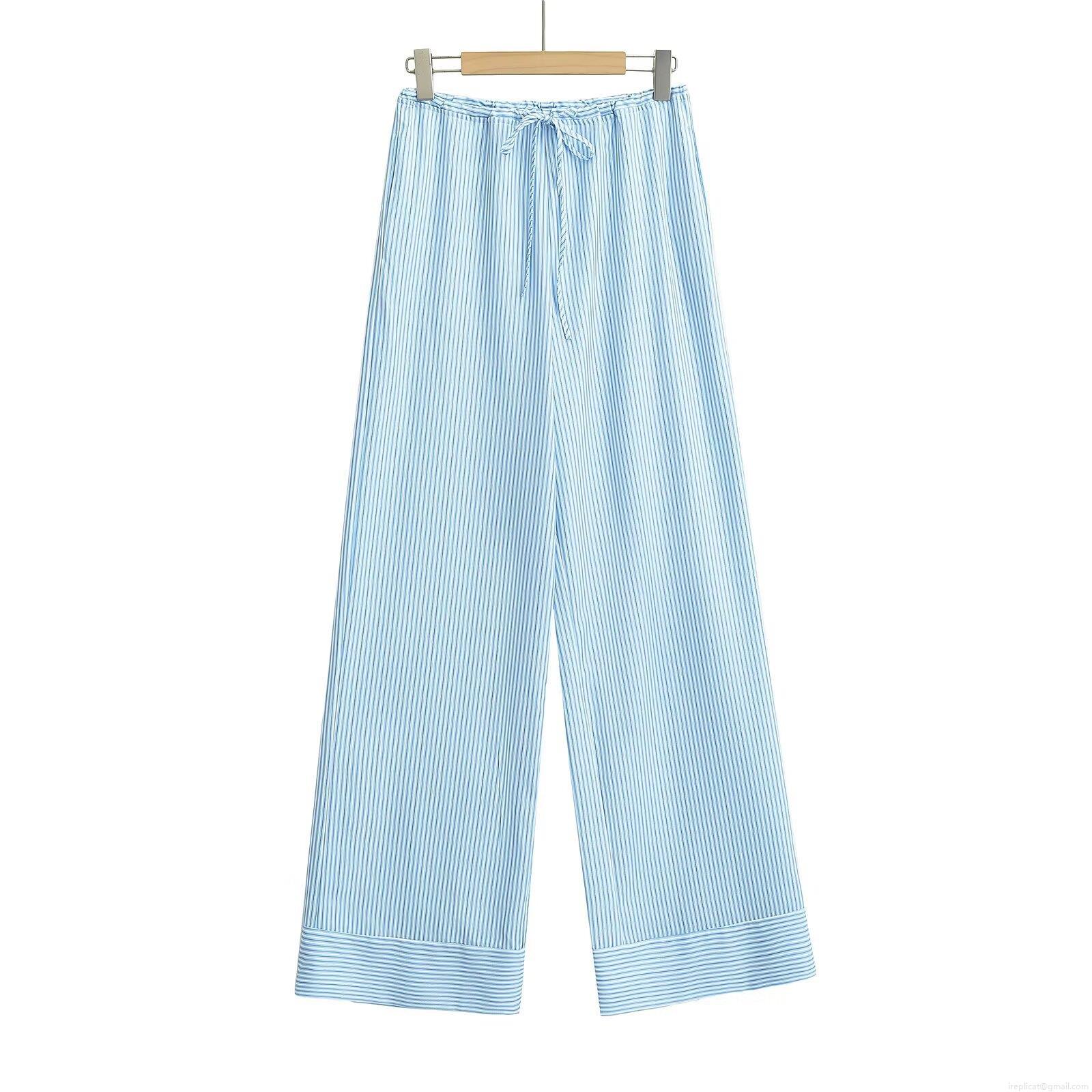 • Women's High Waist Striped Wide Leg Pants Comfortable Polyester Drawstring Casual Long Trousers for Daily Streetwear