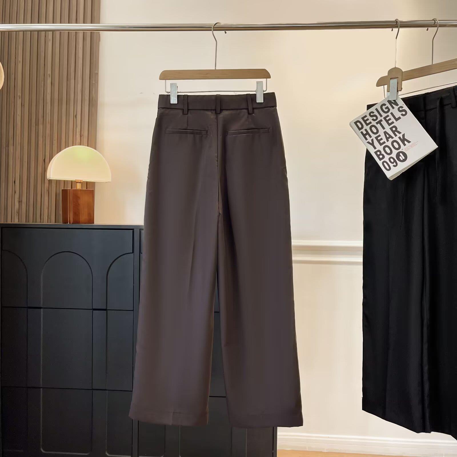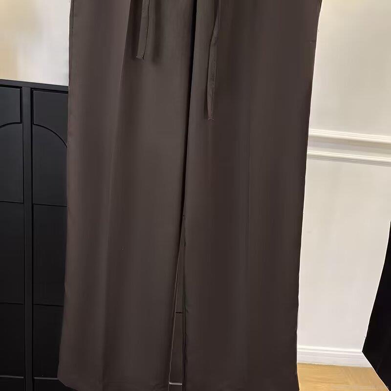 • Women's High Waist Wide Leg Drawstring Pants Minimalist Solid Color Casual Office Straight Trousers For Autumn Winter