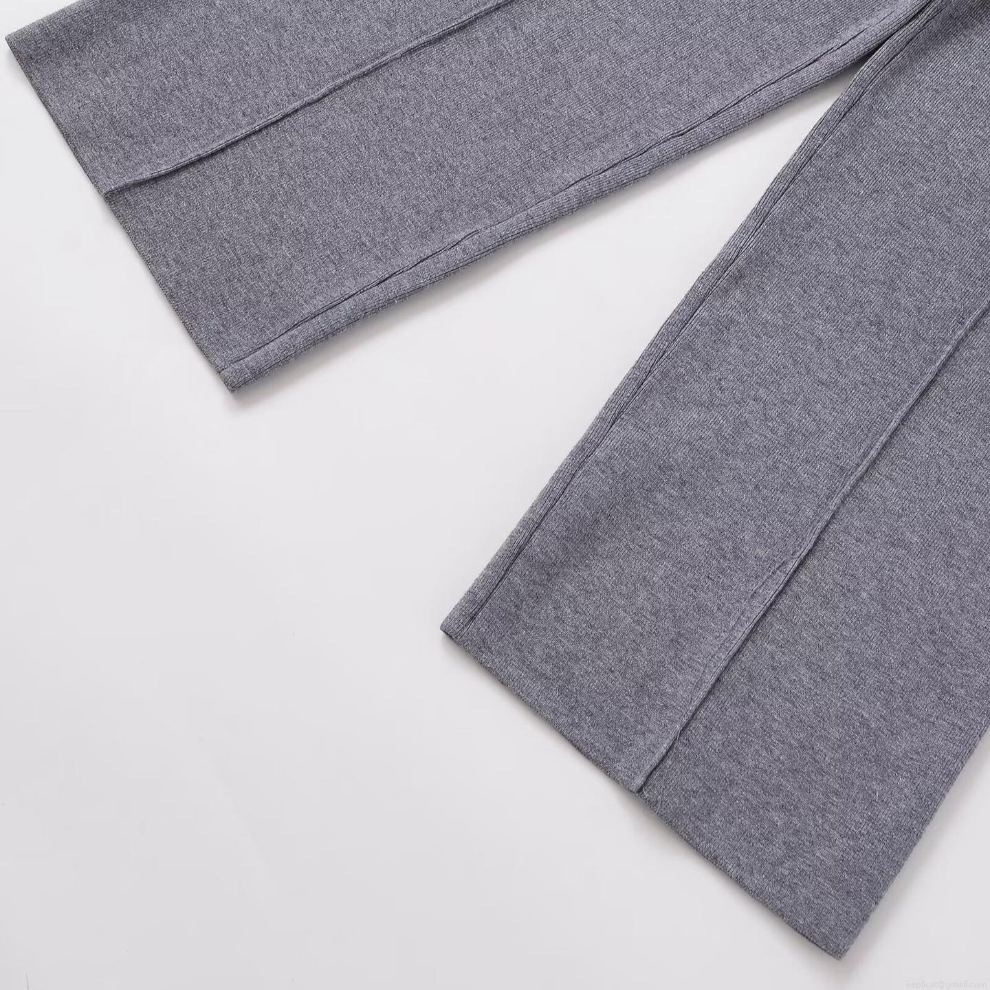 Solid Color, Wide-leg, High-waisted, Knitted Texture, Stitching Decoration