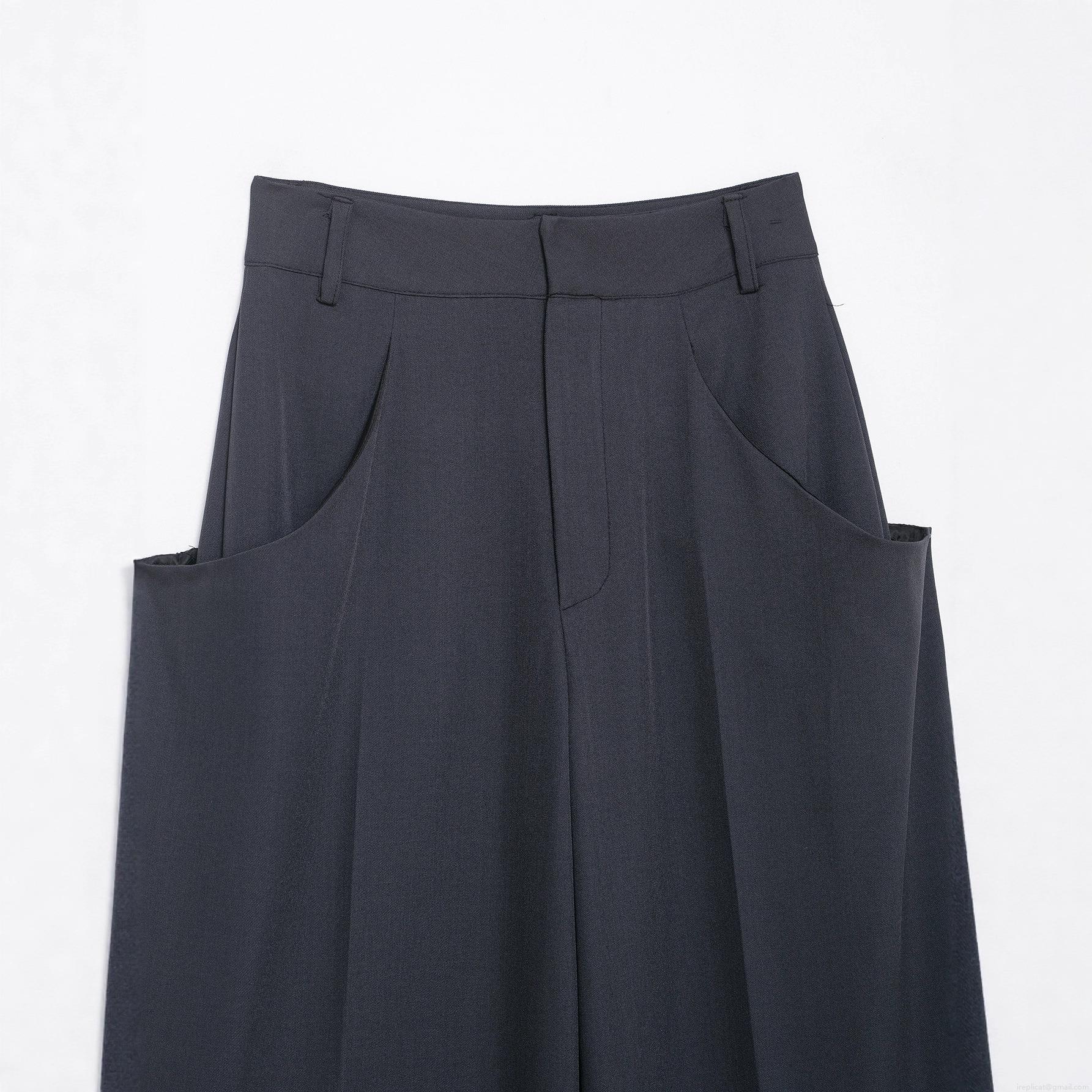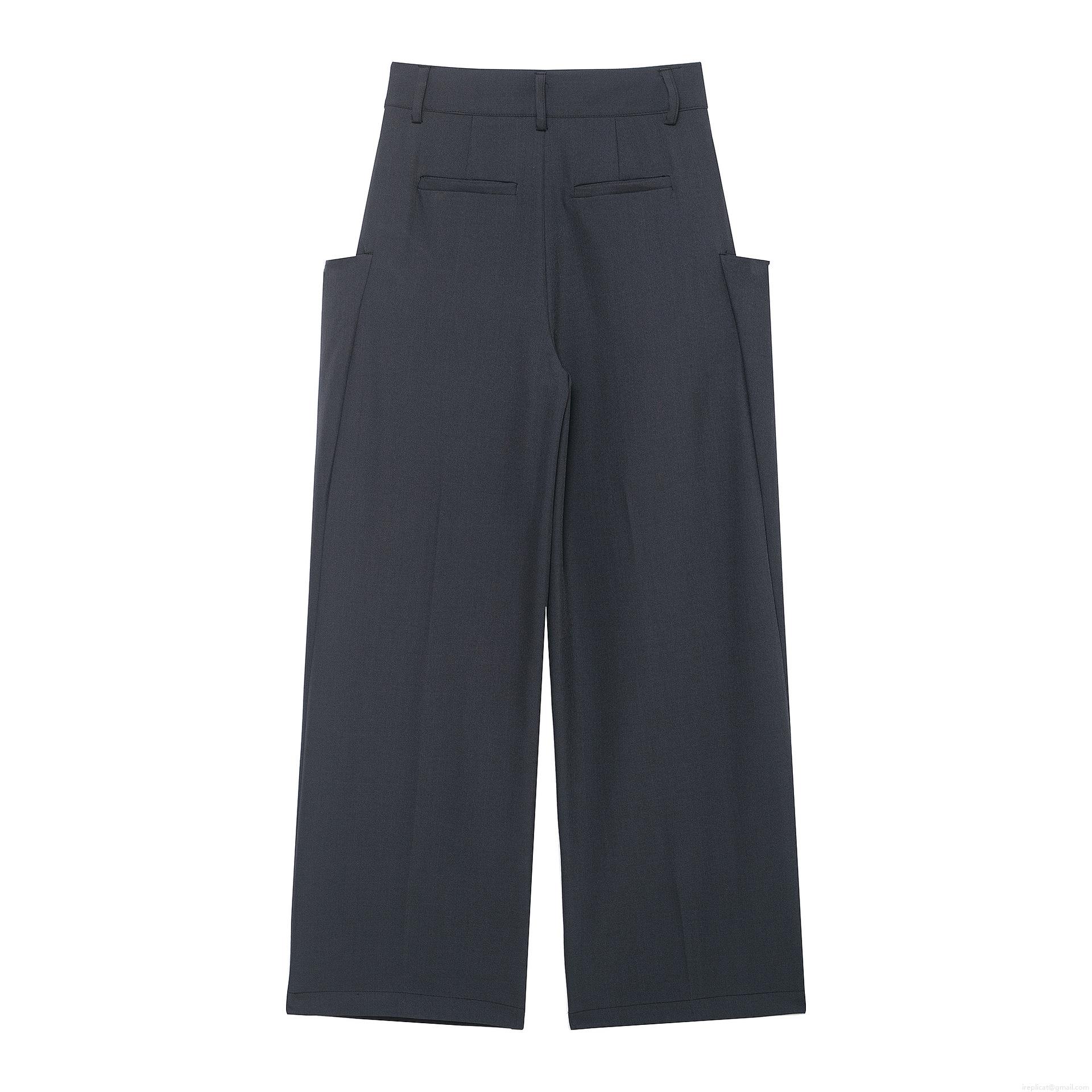 • Women's High Waist Wide Leg Pants 100% Polyester Woven Solid Color Casual Long Trousers Large Curved Pockets Modern Minimalist Fashion