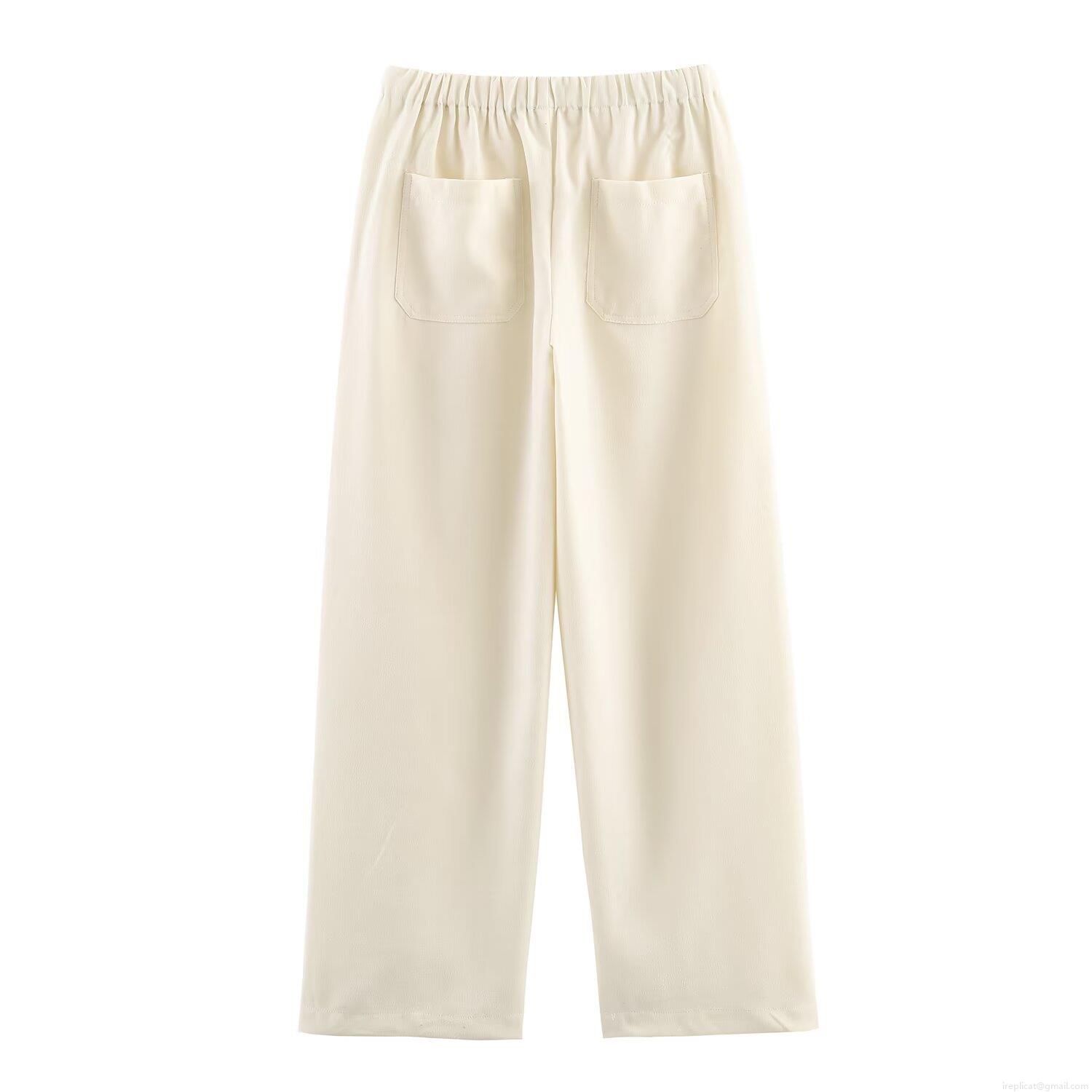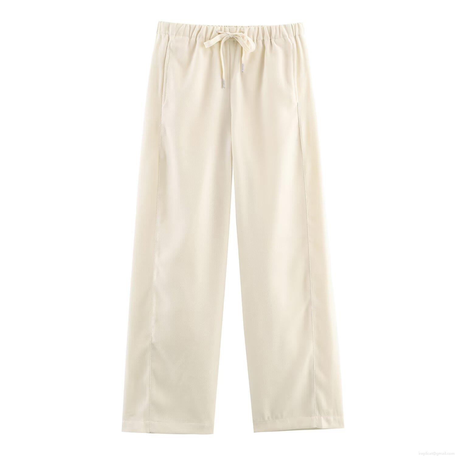• Women's High Waist Wide Leg Pants Casual Drawstring Elastic Waist Polyester Woven Straight Trousers Solid Color Loose Slacks For Women Daily Wear