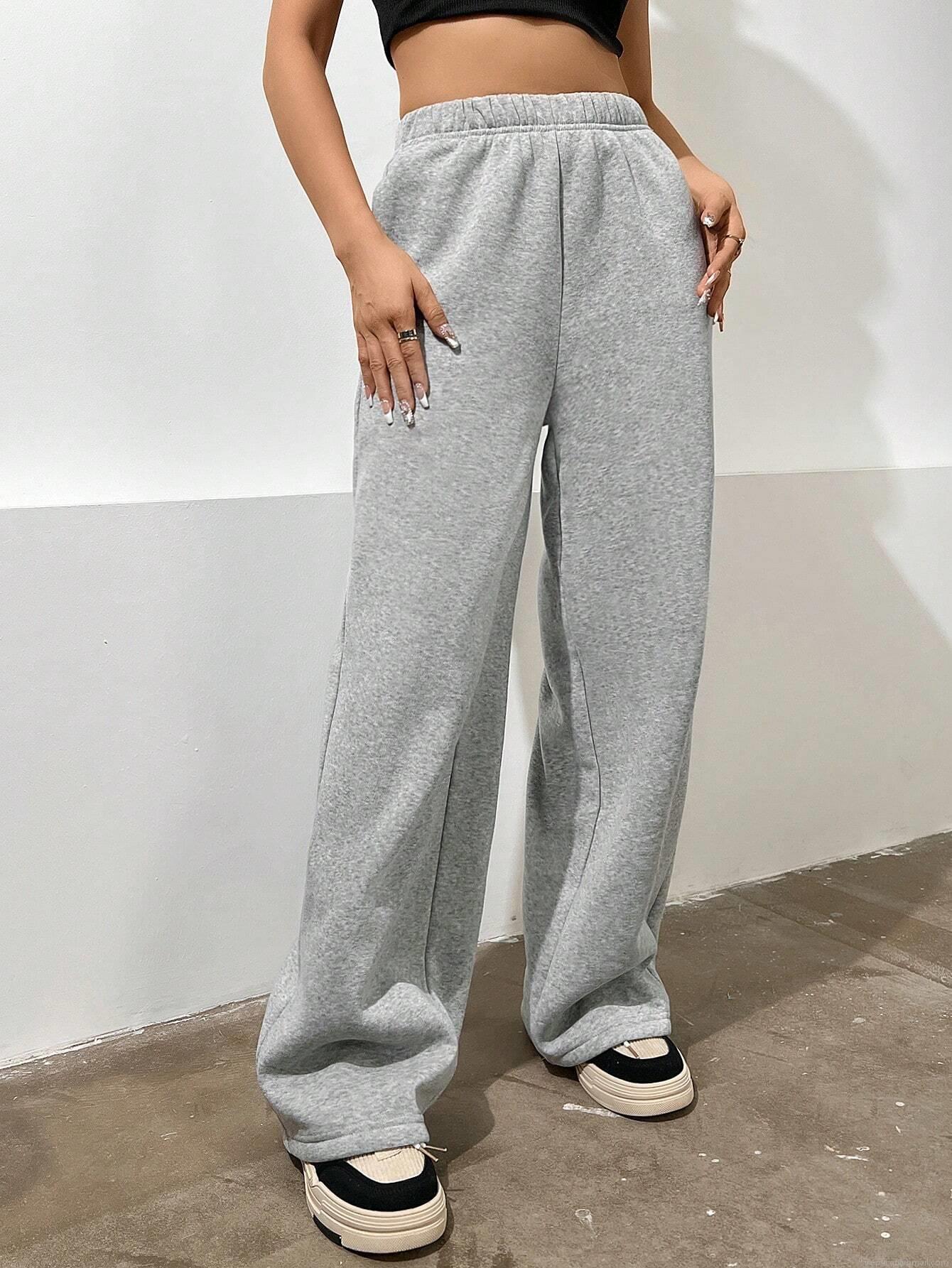 • Women's High Waist Wide Leg Pants Casual Loose Lounge Trousers Grey Polyester Cotton Blend Sweatpants Straight Leg Comfortable Trousers For Women Daily Wear