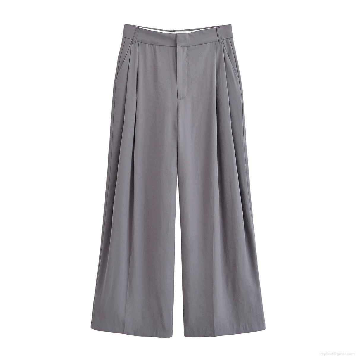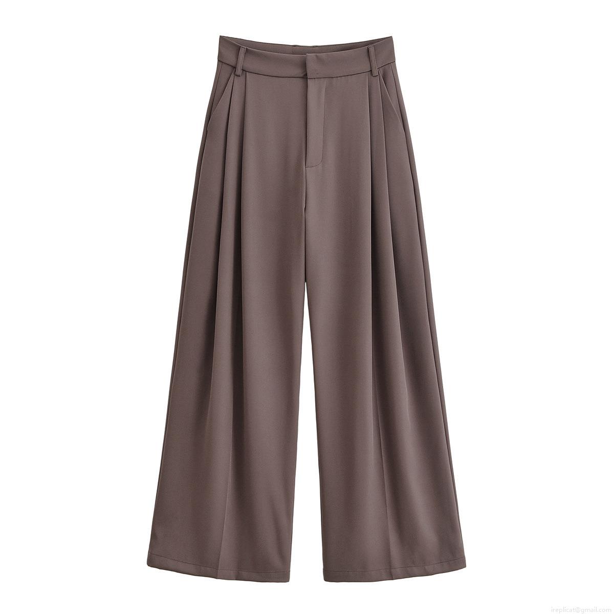 Solid Color, Wide-leg, High-waisted, Double Pleat Design