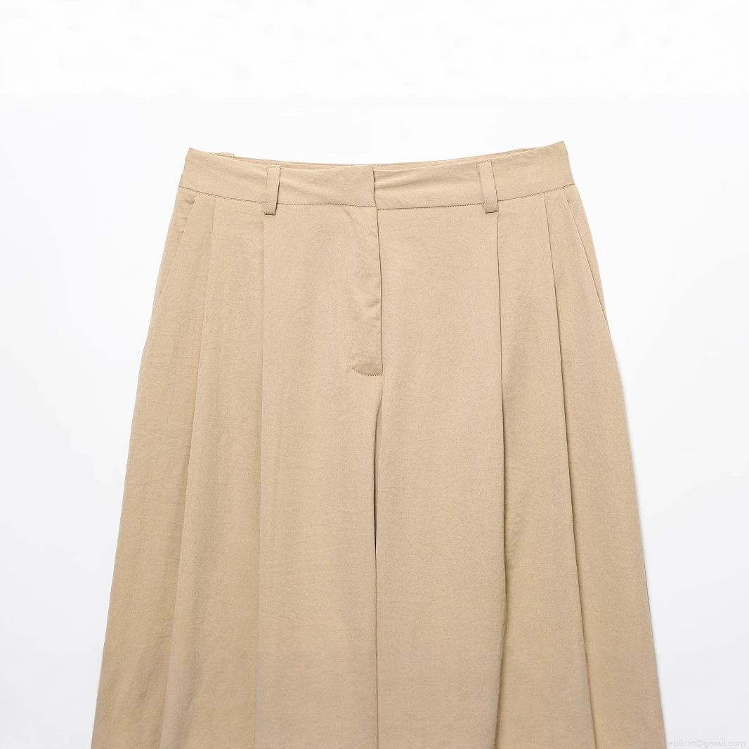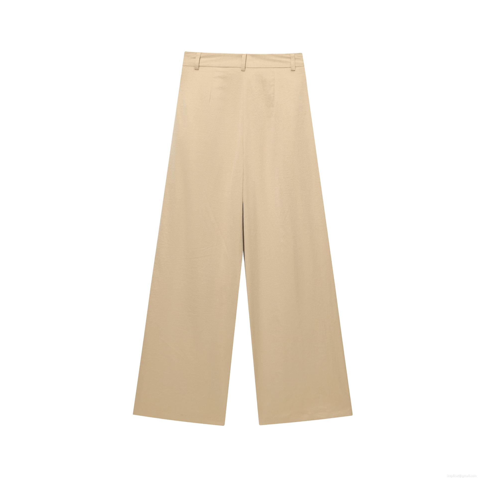 • Women's High Waist Wide Leg Pants Linen Polyester Blend Pleated Casual Straight Trousers for Work Daily Summer Spring Khaki Pants