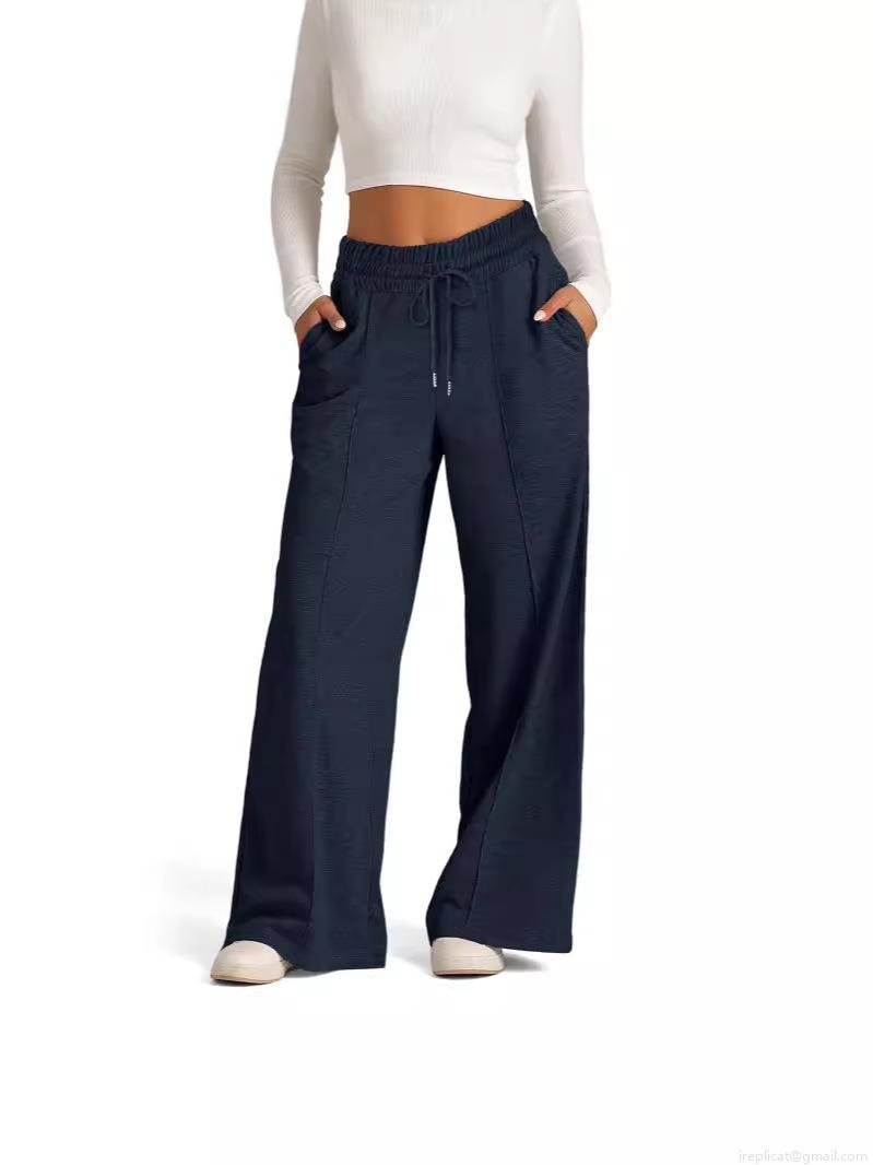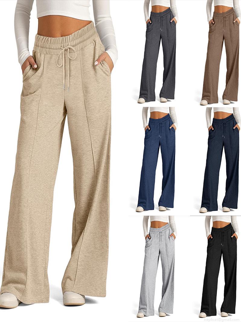 • Women's High Waist Wide Leg Pants Polyester Spandex Drawstring Casual Solid Color Straight Long Trousers For Autumn Winter Fashion Ladies