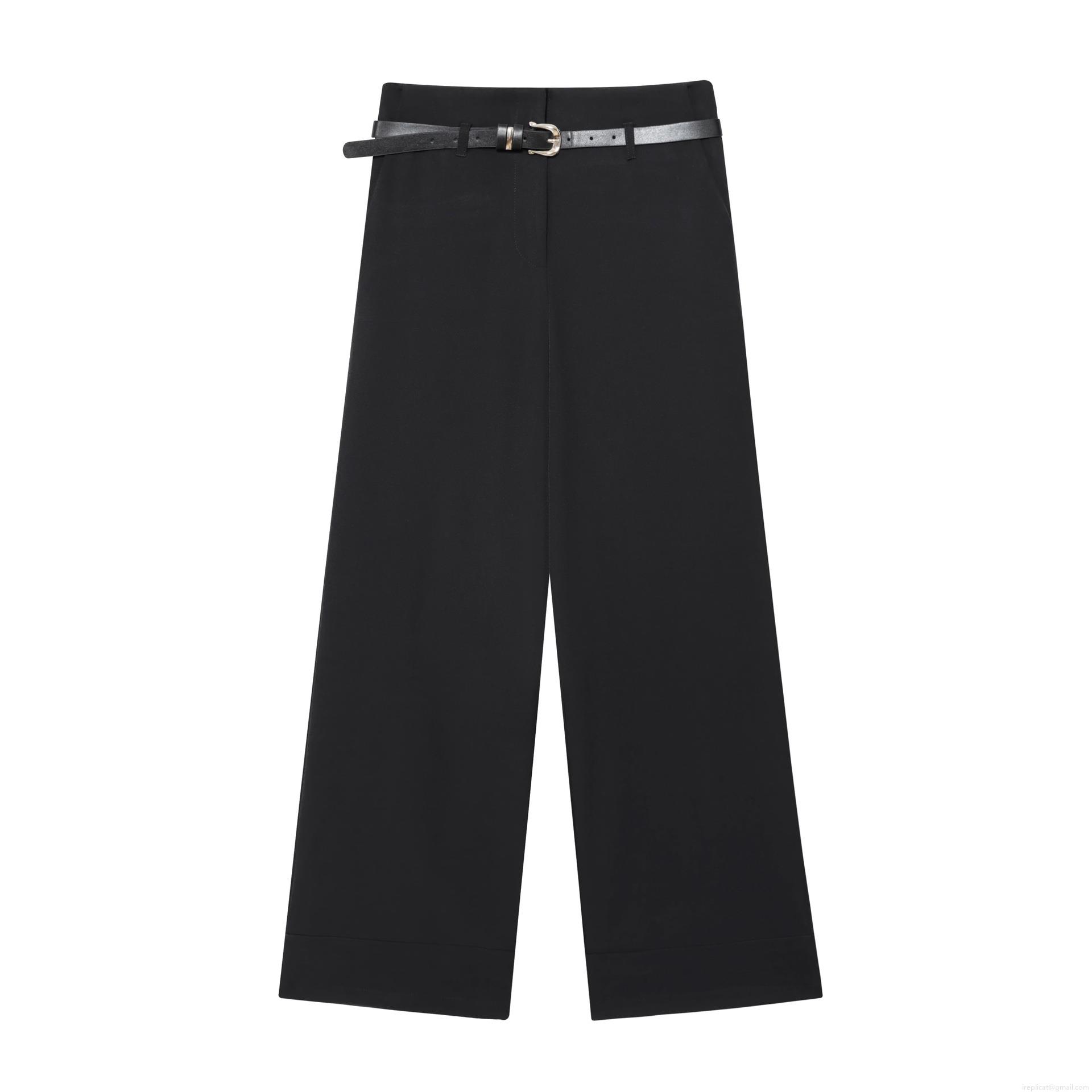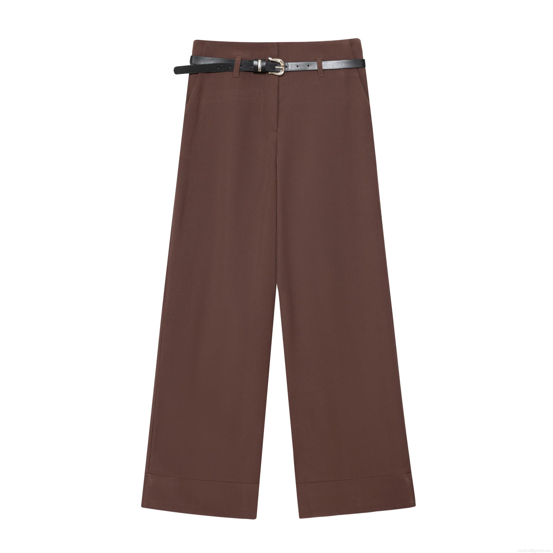 • Women's High Waist Wide Leg Pants With Belt Elegant Cuffed Hem Solid Color Polyester Trousers For Office Casual Daily Wear Long Pants