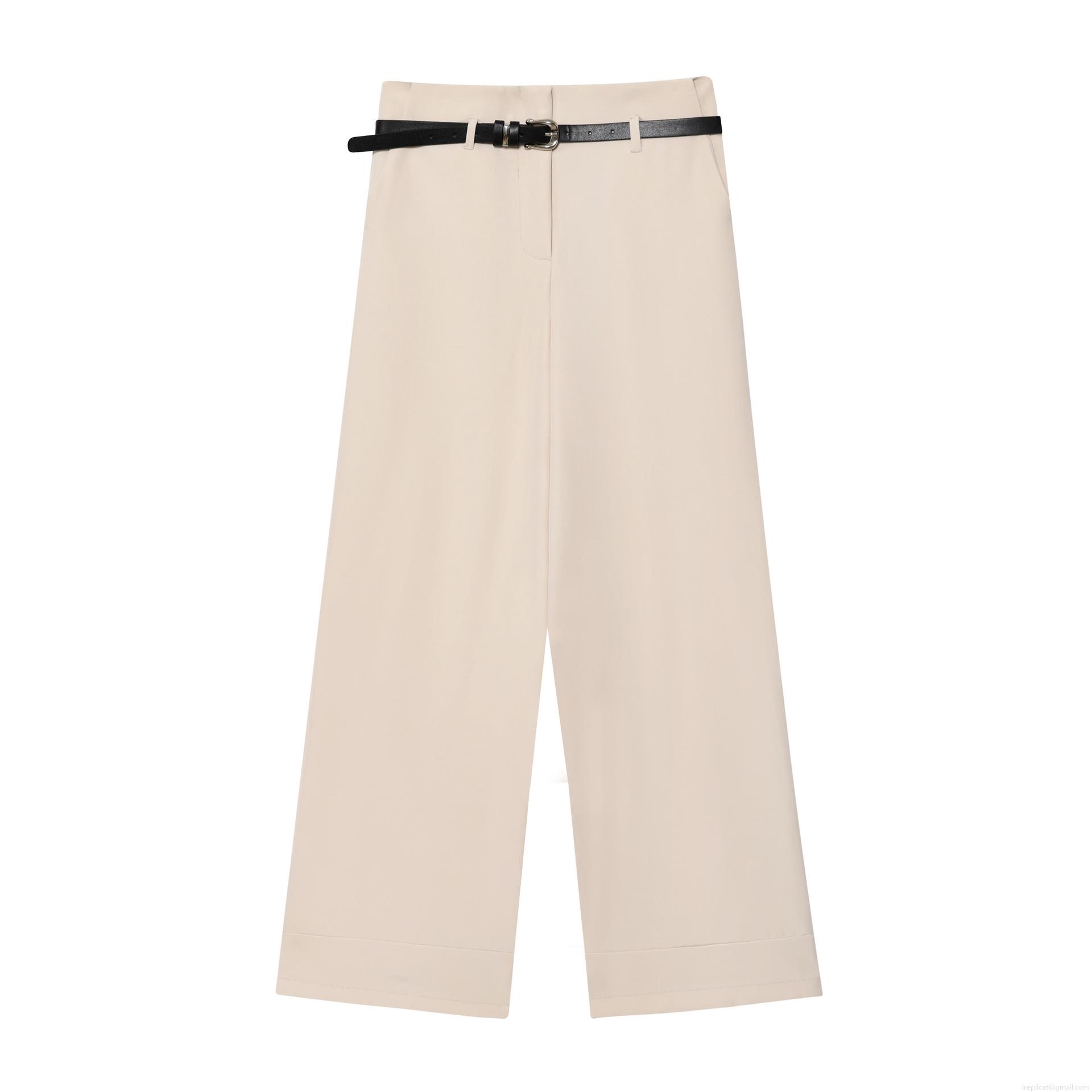 Solid Color, Crimping, Wide-leg, High-waisted, Matching Belt