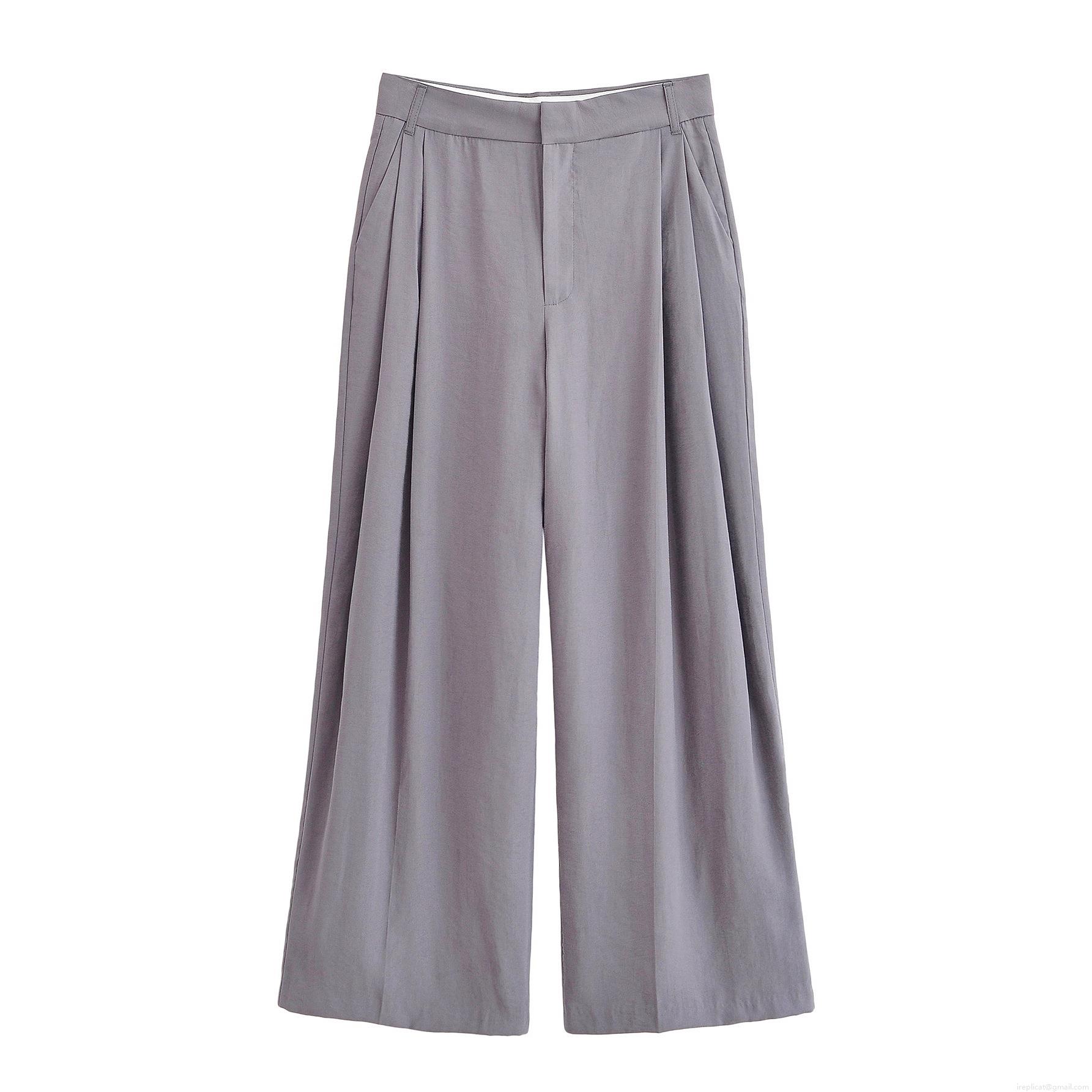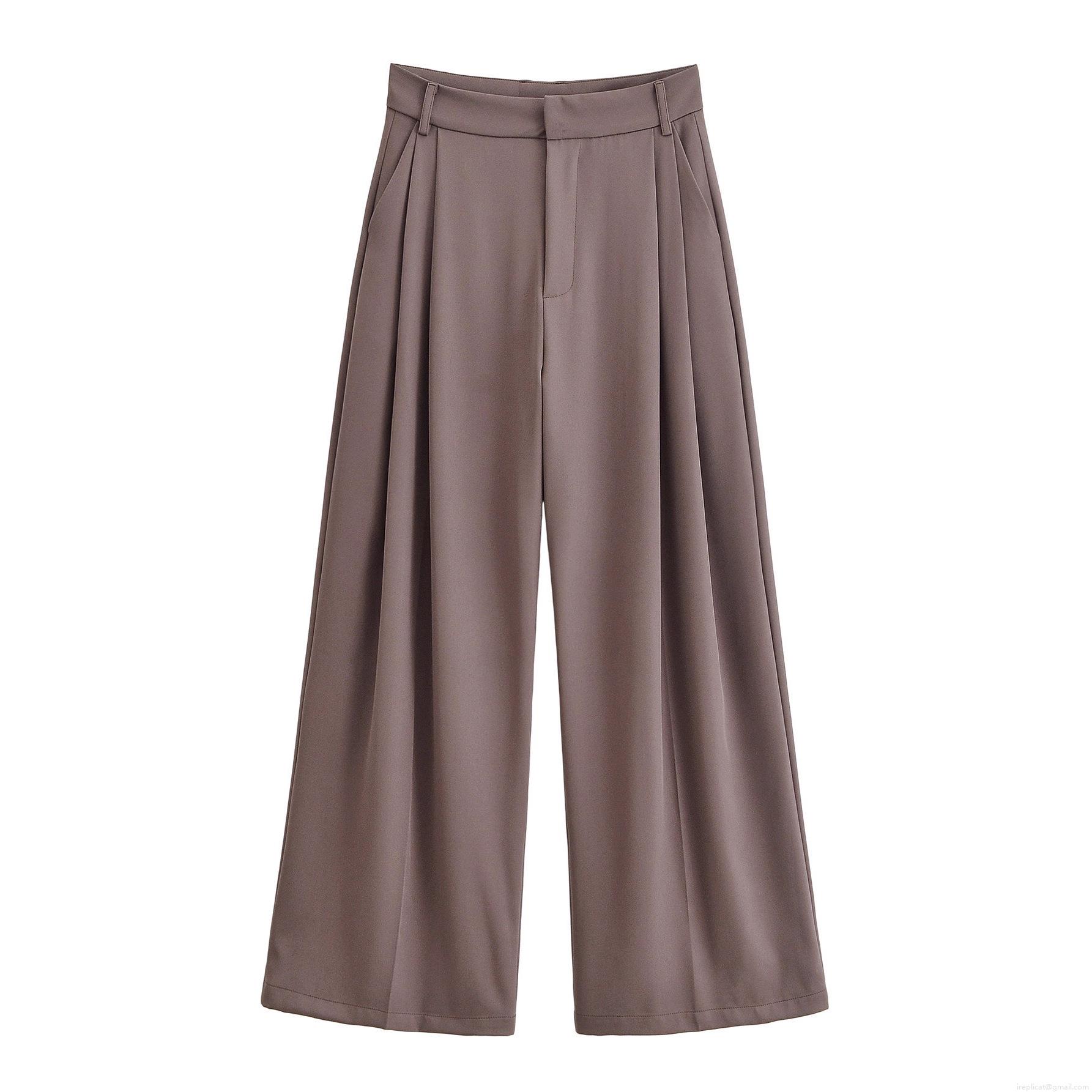 • Women's High Waist Wide Leg Pleated Casual Trousers 100% Polyester Solid Color Loose Straight Suit Pants For Autumn Office Lady Daily Wear
