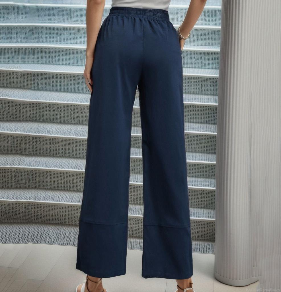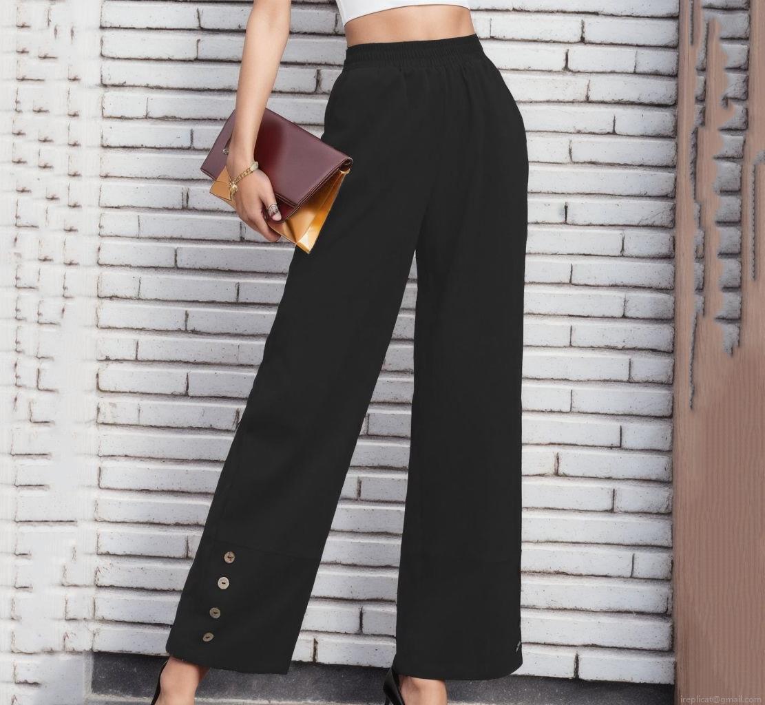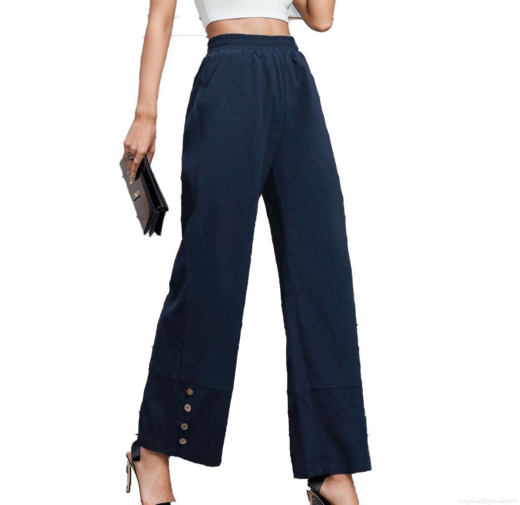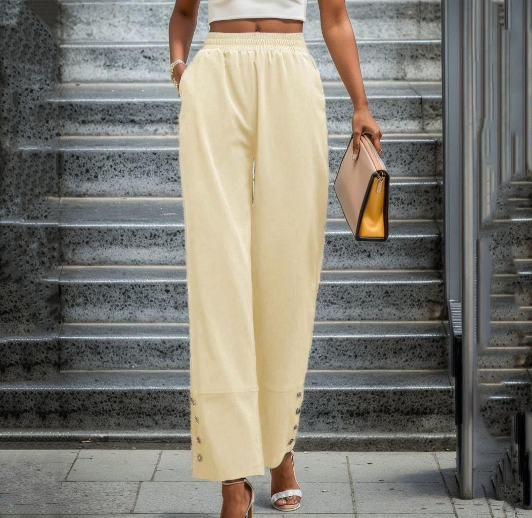 • Women's High Waist Wide Leg Straight Pants Solid Color Loose Fitting Casual Trousers With Side Buttons At Hem Elegant Commute Polyester Pants