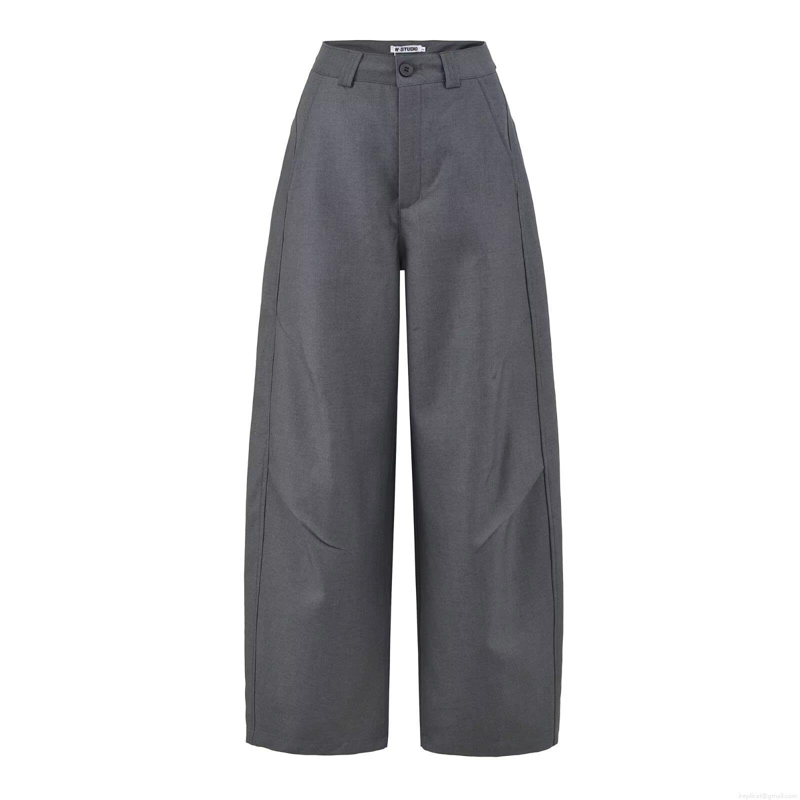 • Women's High Waist Wide Leg Suit Pants Loose Fit Woven Polyester Blend Straight Trousers For Office Casual Daily Wear Fashion Chic Streetwear