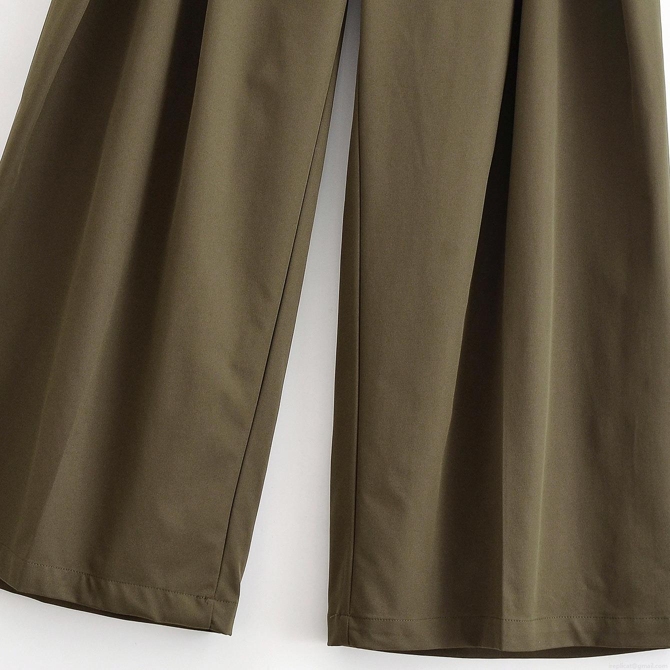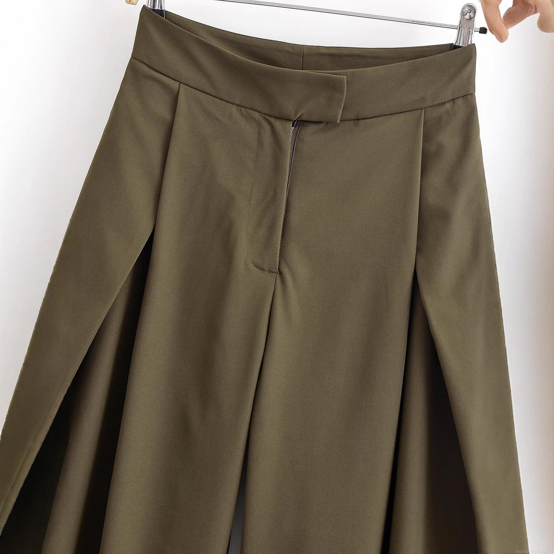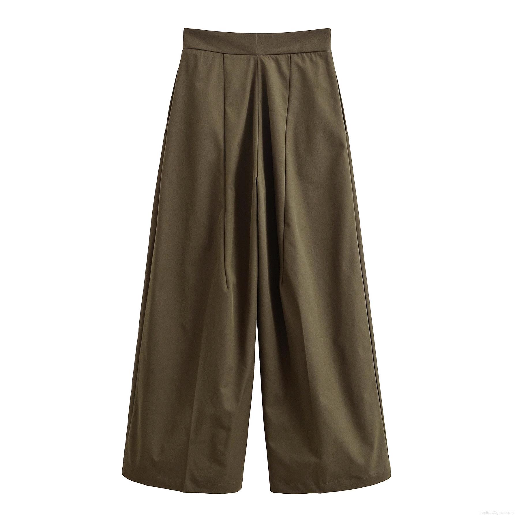 • Women's High Waist Wide Leg Trousers 100% Polyester Pleated Loose Straight Casual Pants For Office Commuting Daily Minimalist Solid Color Olive Green