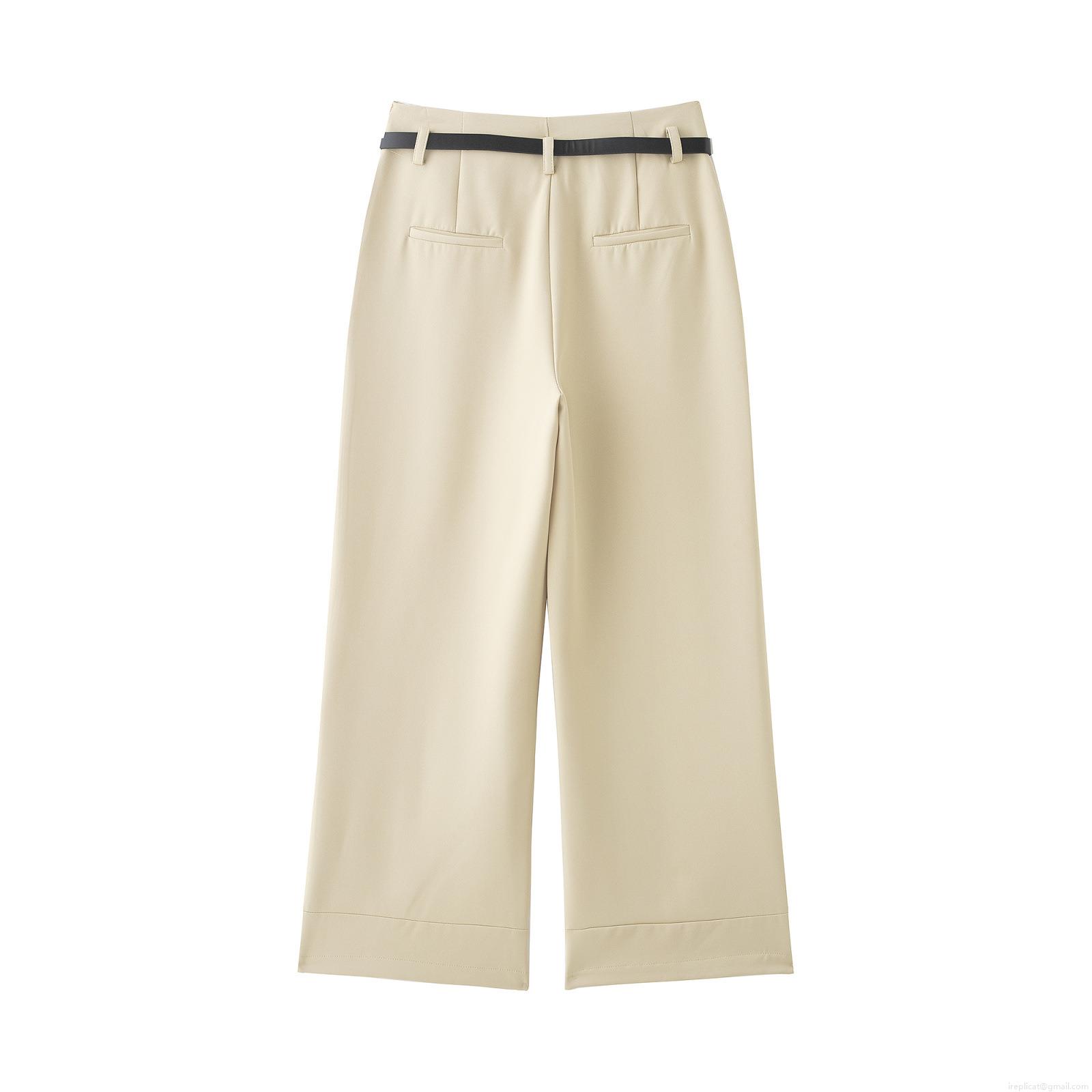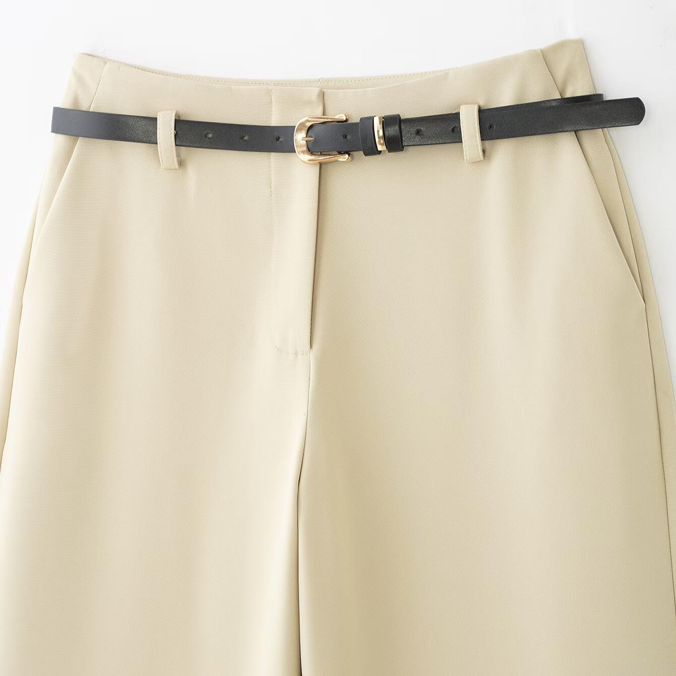 • Women's High Waist Wide Leg Trousers 100% Polyester Solid Color Loose Pants With Belt For Office Work Casual Commute Elegant Ladies Fashion