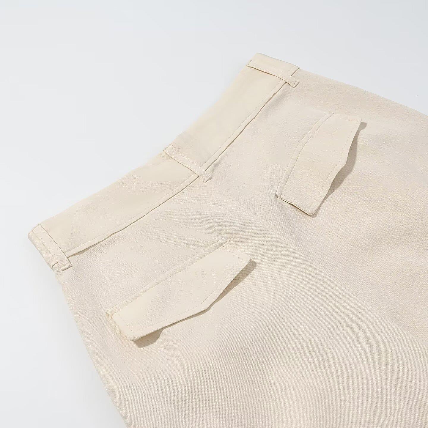 Solid Color, Splice, Collage, Pleats, High-waisted Design, Wide-leg Cut