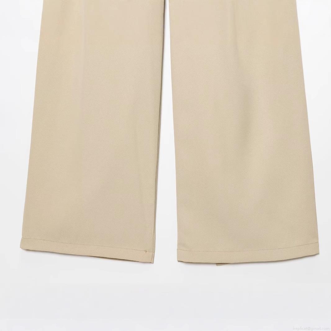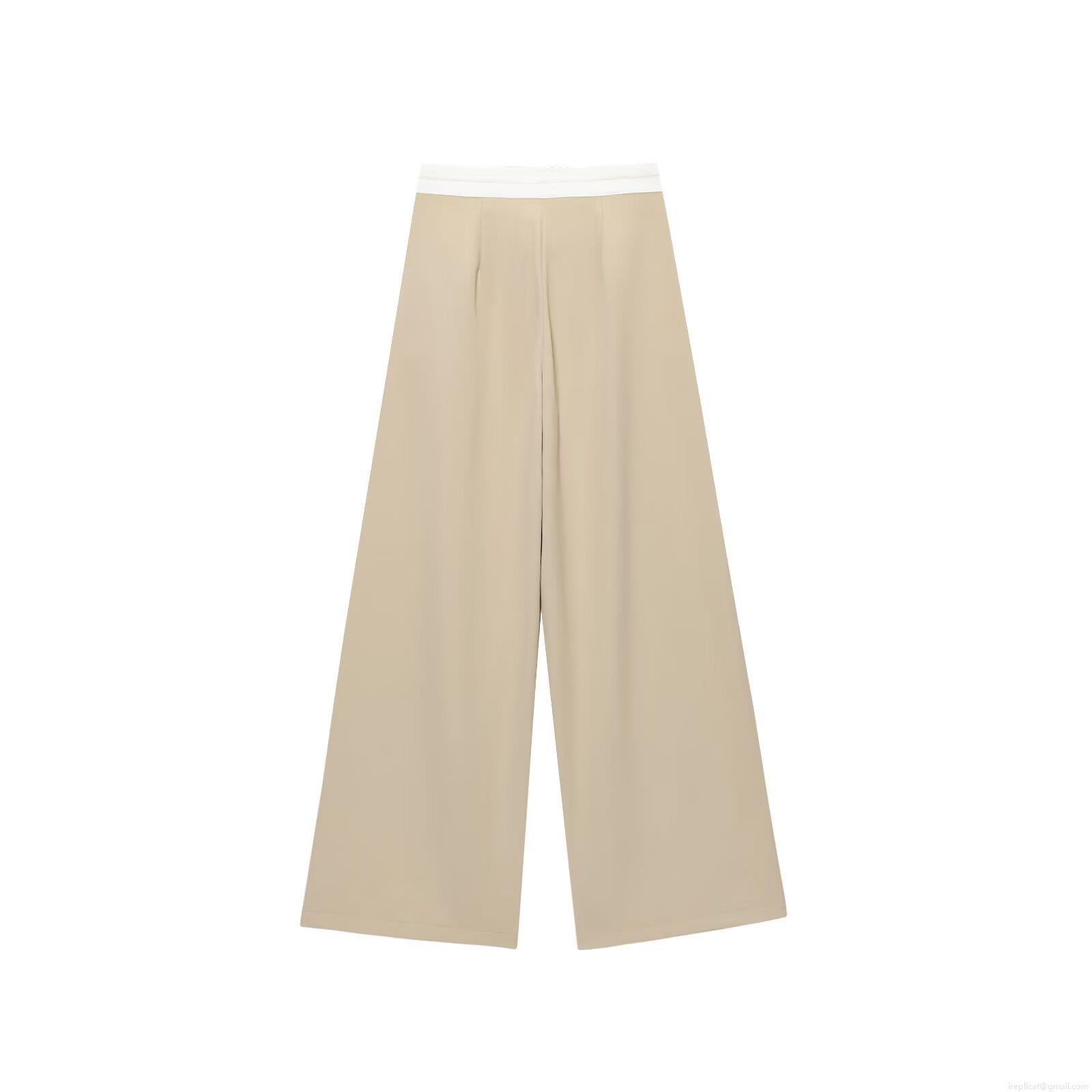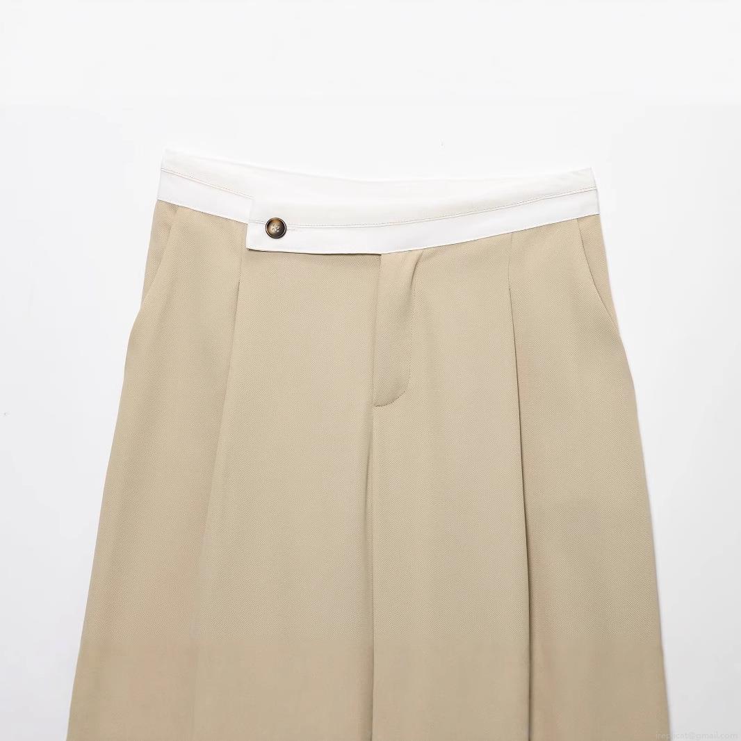 • Women's High Waist Wide Leg Trousers Contrast Color Patchwork Waistline Polyester Casual Straight Leg Pants Office Lady Streetwear Khaki