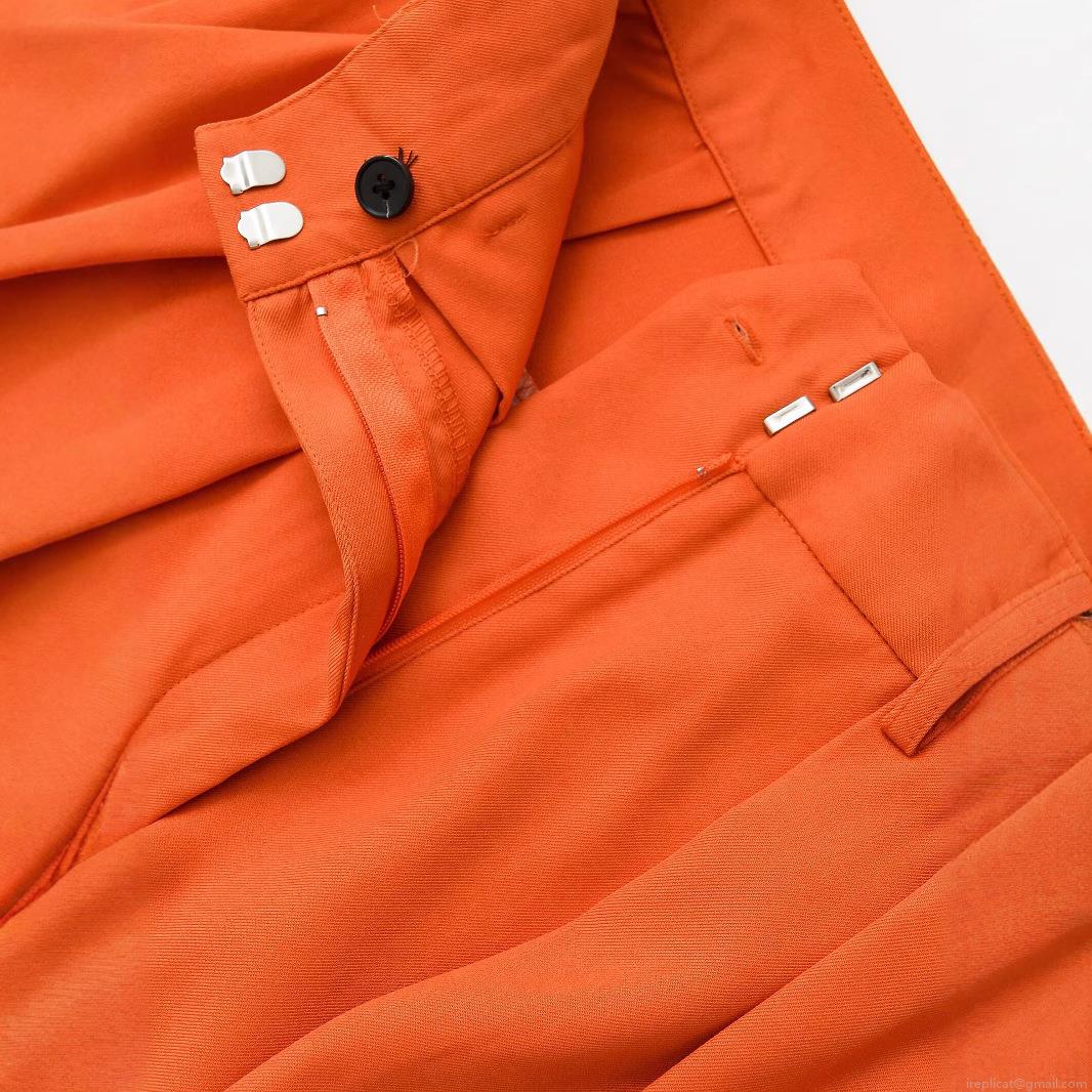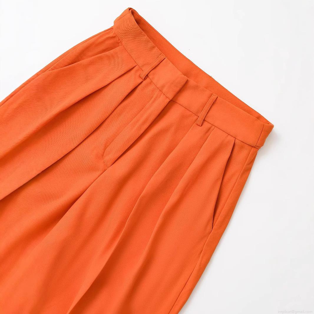 • Women's High Waist Wide Leg Trousers Elegant Solid Tangerine Straight Leg Casual Pants Front Pleats Side Pockets Professional Work Wear Summer Long Pants