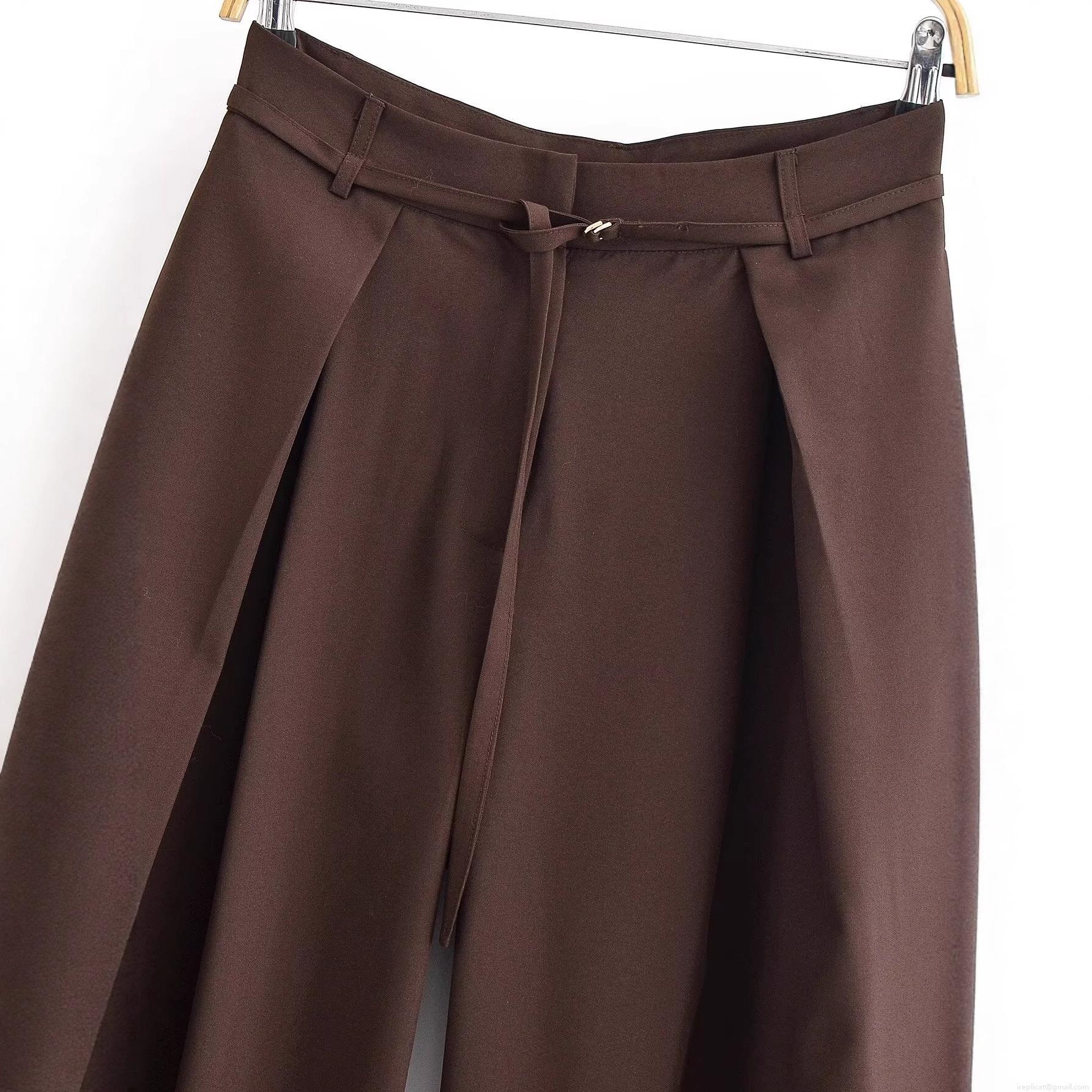 Solid Color, Pleated Design, Wide-leg Cut, Matching Belt