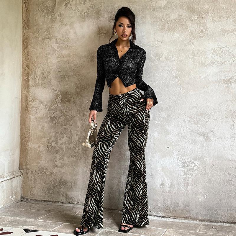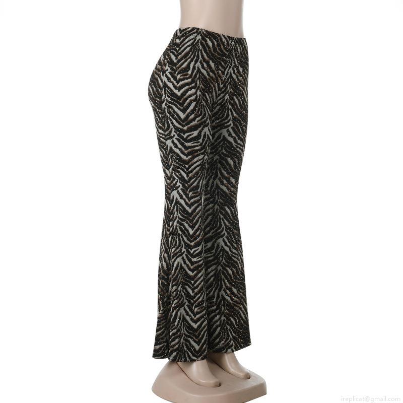 • Women's High Waist Zebra Print Rhinestone Flare Pants Sexy Animal Pattern Flared Leg Trousers Bohemian Streetwear Clubwear Party Bottoms