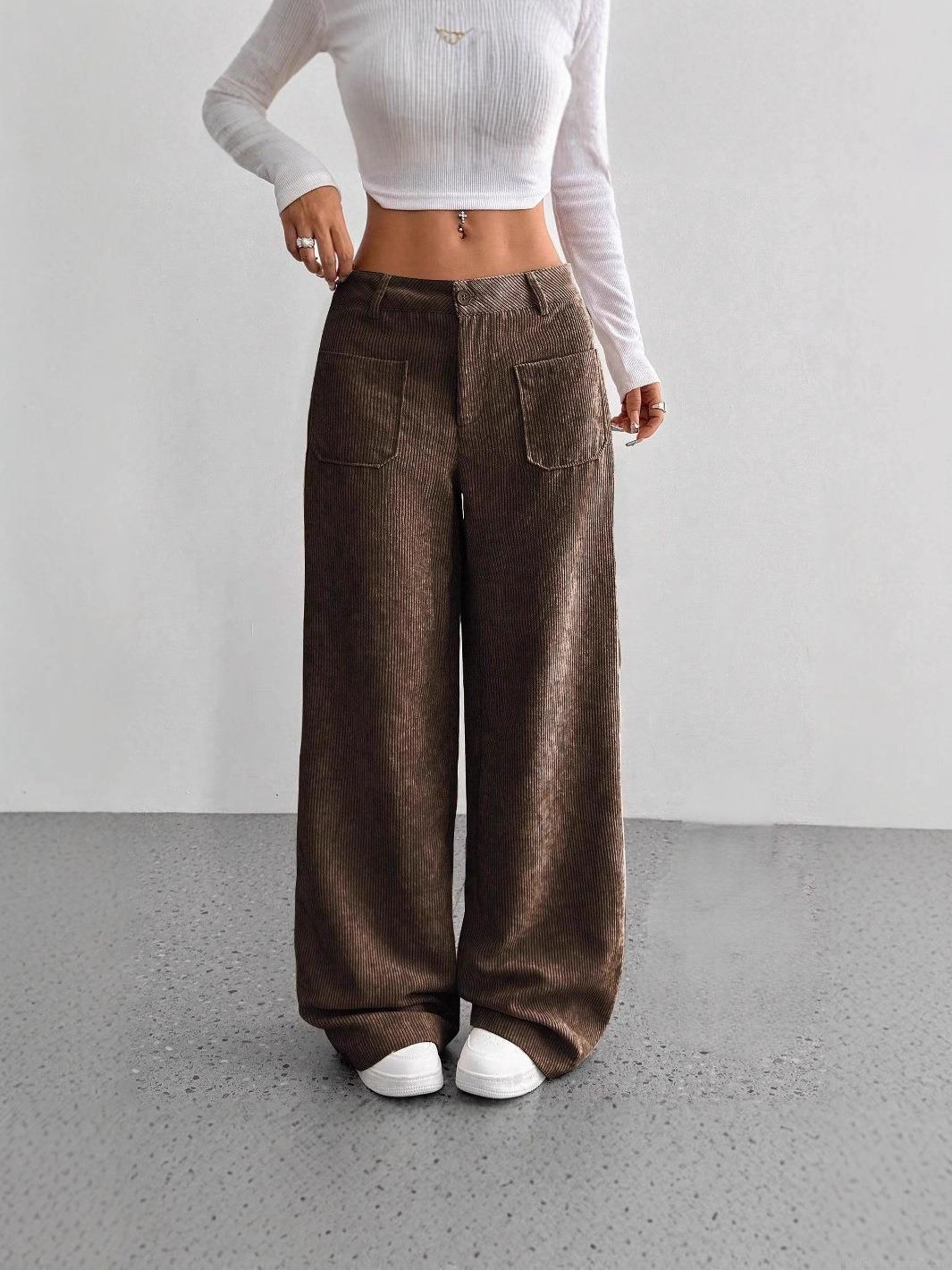 • Women's High Waisted Corduroy Wide Leg Pants Casual Loose Fit Straight Trousers With Pockets Solid Color Autumn Winter Fashion Bottoms