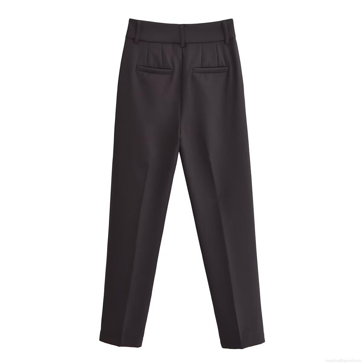 • Women's High Waisted Dress Pants 100% Polyester Straight Leg Trousers Solid Color Office Casual Slacks