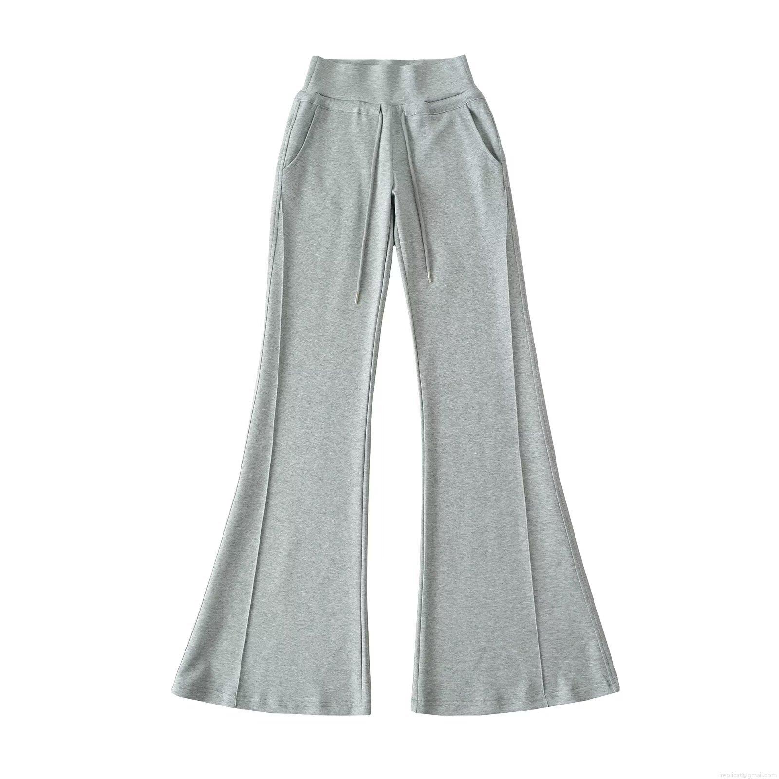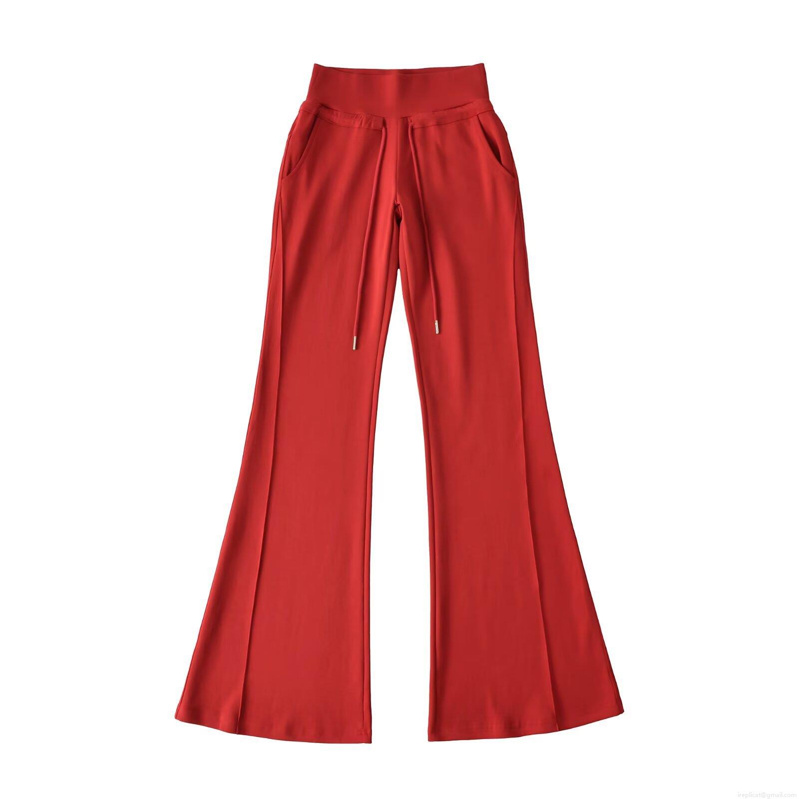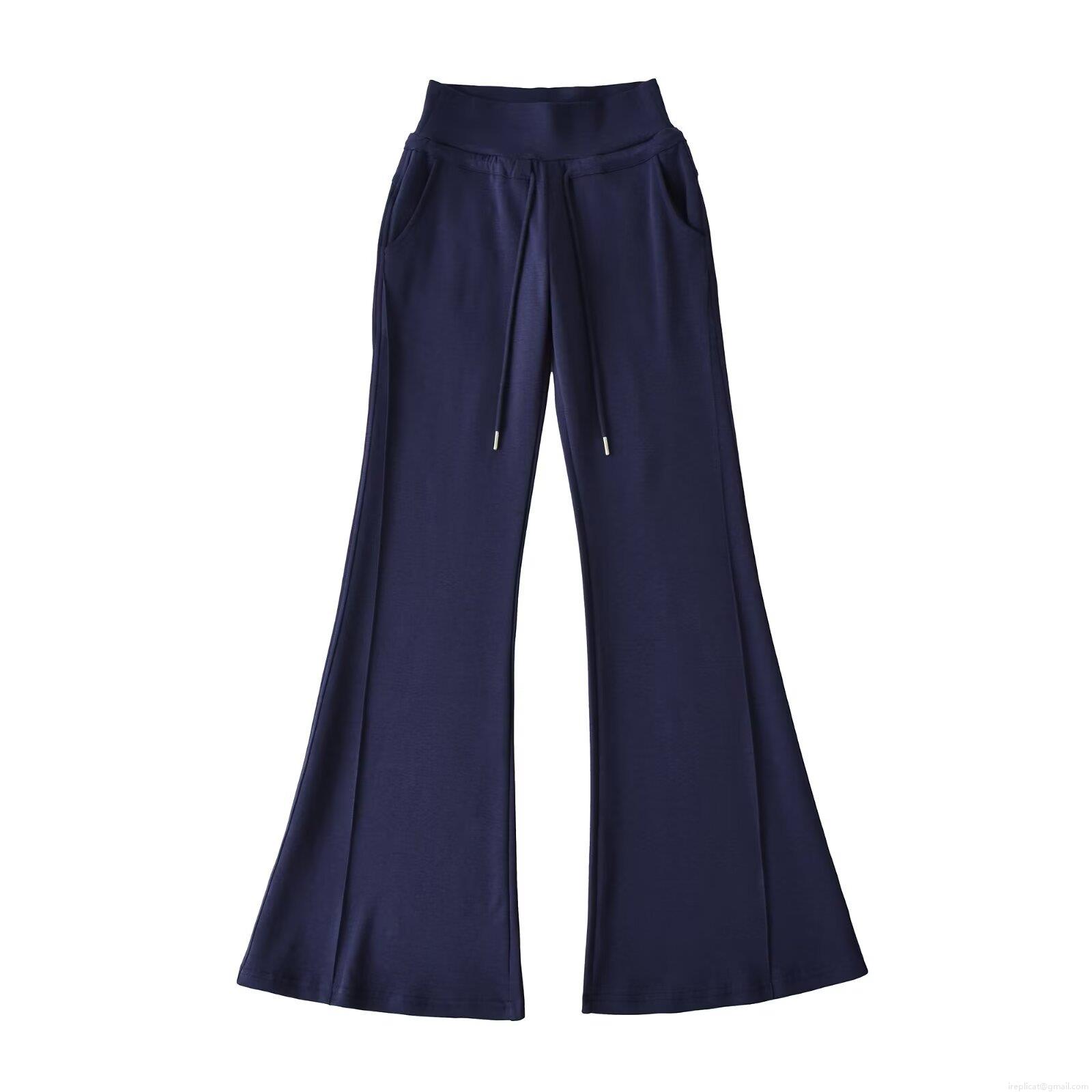 • Women's High Waisted Flare Pants Casual Solid Color Drawstring Wide Leg Trousers With Pockets Slim Fit Polyester Blend Yoga Sports Pants